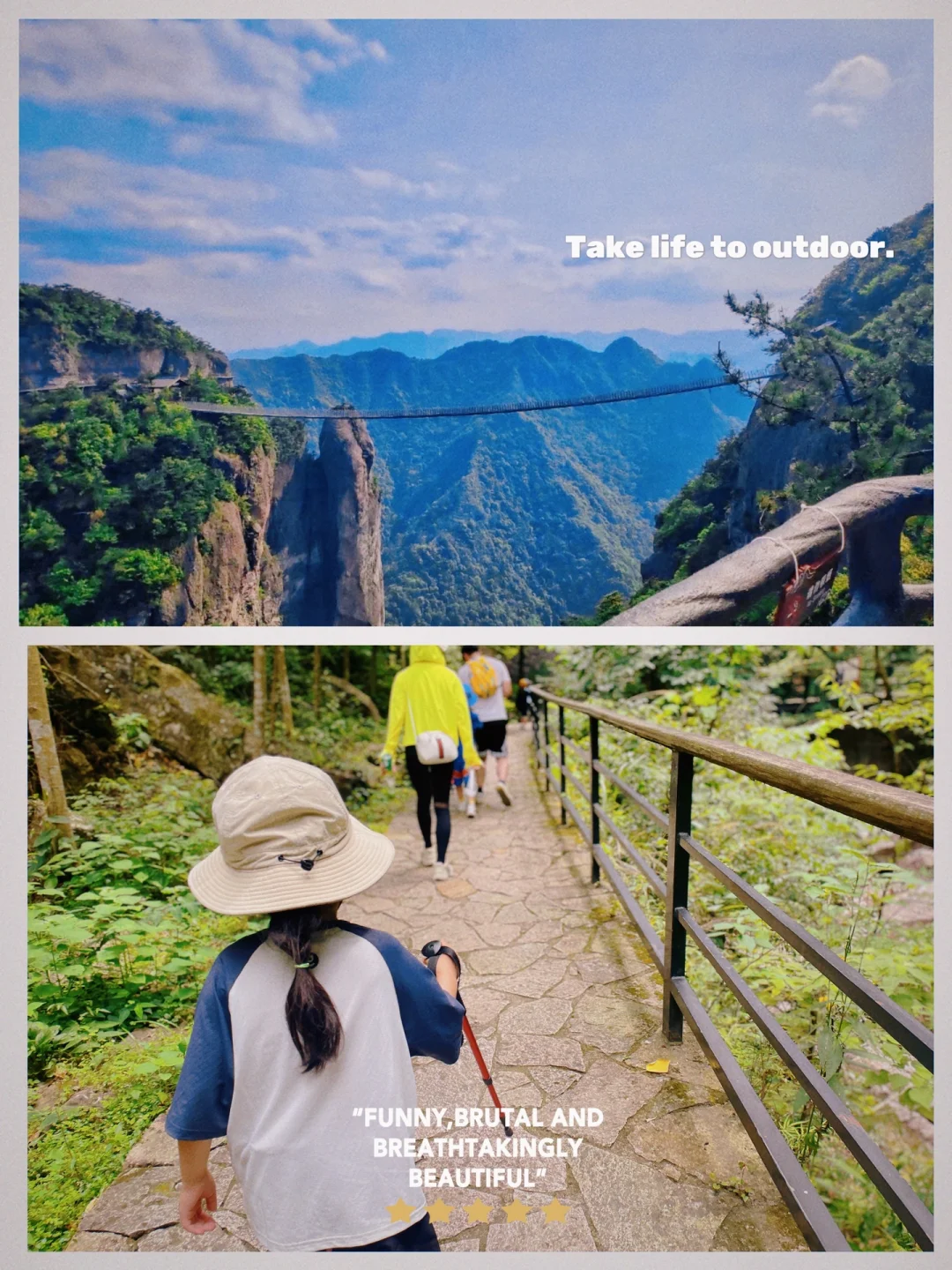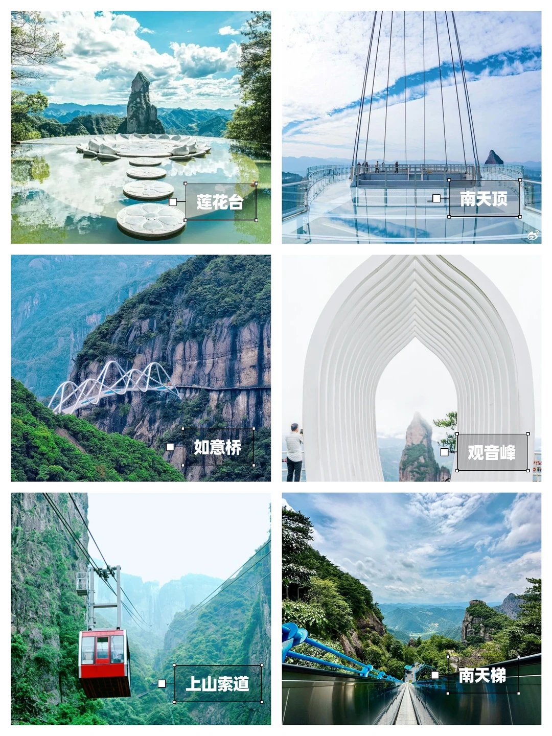 建议充分利用景区内的电梯与索道,上山后在高空栈道步行约1-2小时即可打卡山顶的精华景点。