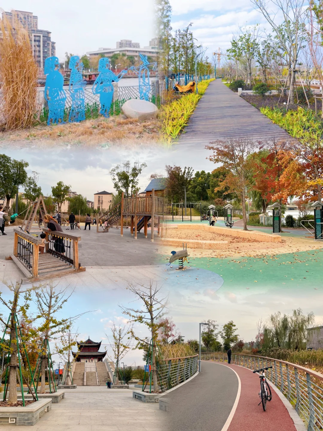 3⃣️适合遛娃半日游或家庭休闲游,沿途绿地公园一个接一个,可露营可野餐,儿童游玩场地又新又多且都基本没有人!