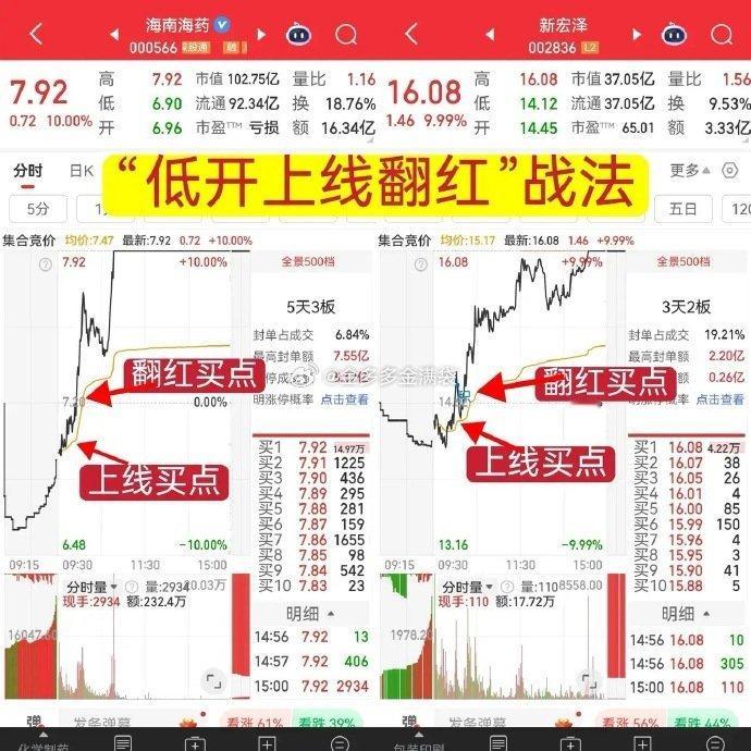“低开上线翻红”战法该战法是一种在早盘(9:05-10:30)捕捉强势股的短线操