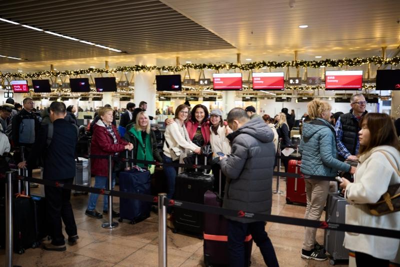 图为布鲁塞尔—重庆首航办理值机手续的乘客。海南航空供图