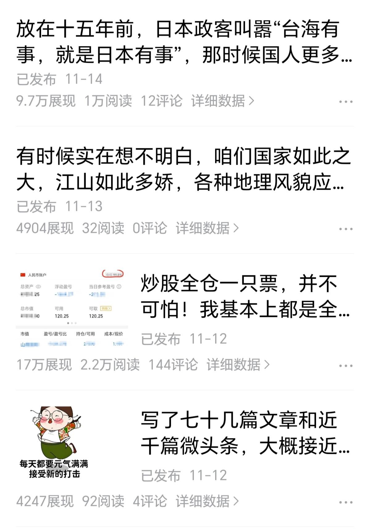 最近看到好多被取消认证的条友发文表达感慨,想了想,还是不继续申请认证新锐创作者了!因为平时发文中偏时政的内容多一些,这样的内容稍不注意就会出现审核违规的情况,即便认证新锐创作者成功了,可能说不准在某个时刻就会因为被判违规而被取消认证!所以,无官一身轻,轻松自在惬意,至少没有新锐创作者必须接受的要求、任务和约束,而且,流量也并不一定就比新锐创作者差。