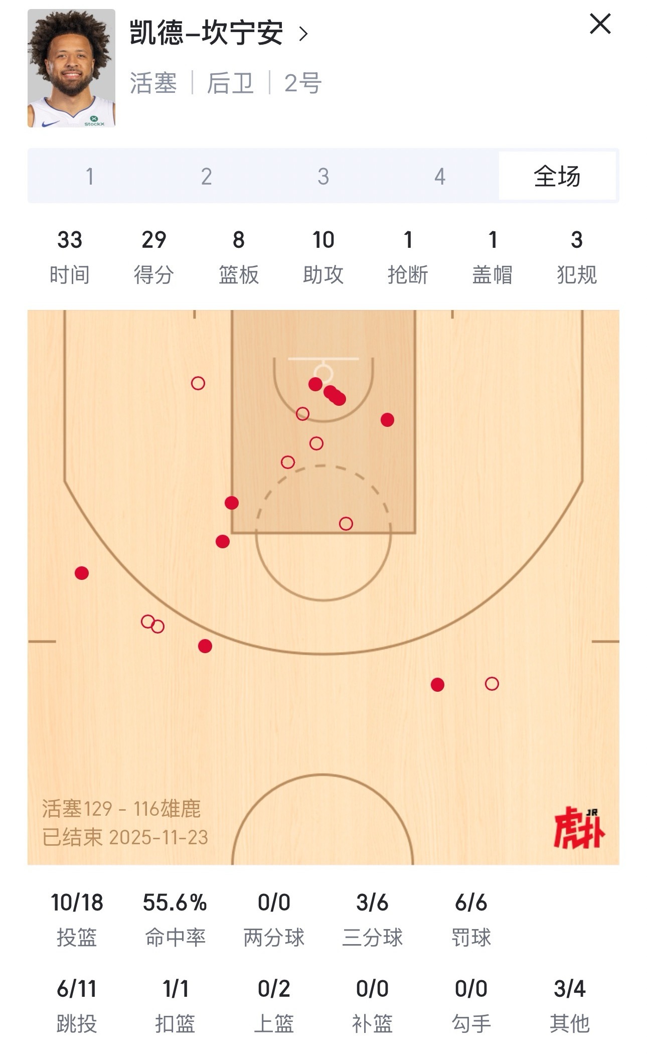 字母哥缺阵,坎宁安准三双,活塞129-116战胜雄鹿取得12连胜…