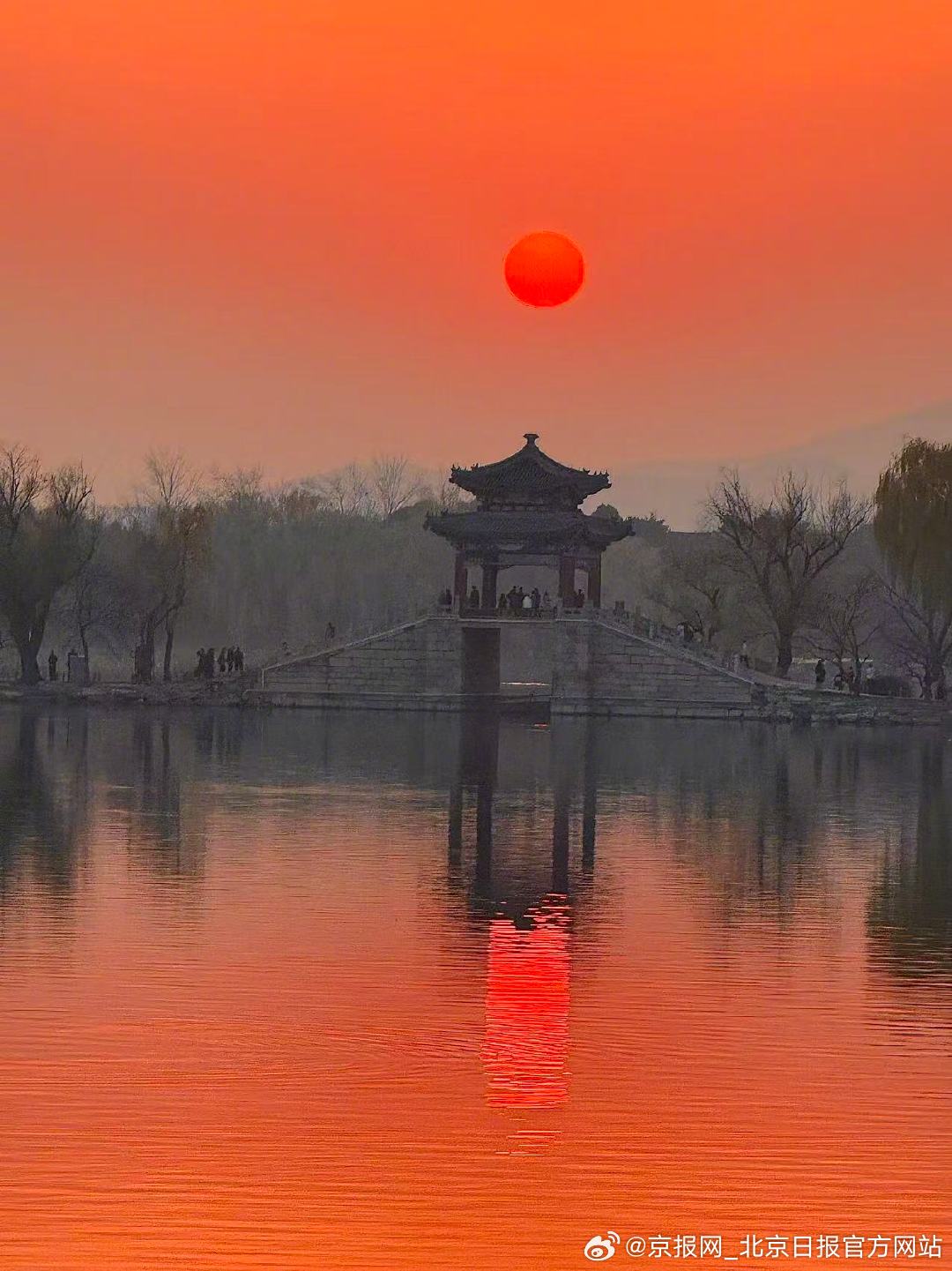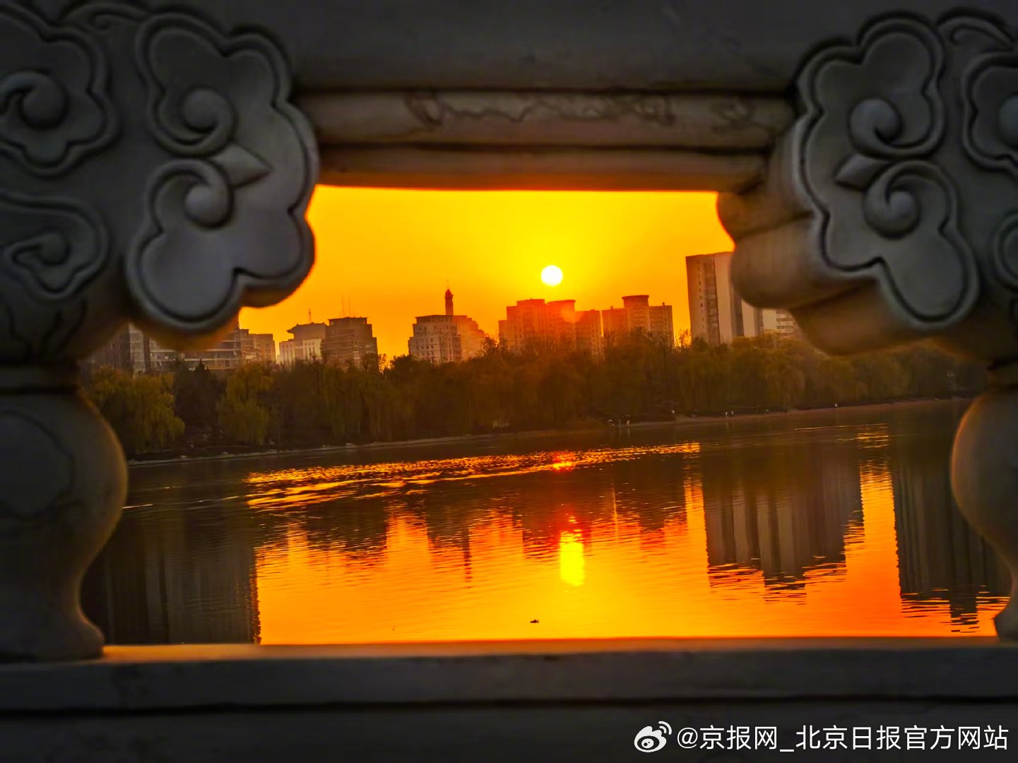 【夺目!】 11月23日,周末尾声,北京超大落日惊艳登场。橘红太阳折射出万丈霞光,在玉渊潭公园中堤桥“上演” “金光穿洞”(图8) ,吸引众多游客拍照,定格下这一瞬间的美好。( 作者 马文晓 王建忠 姚猛 温红征 钟瑞 )