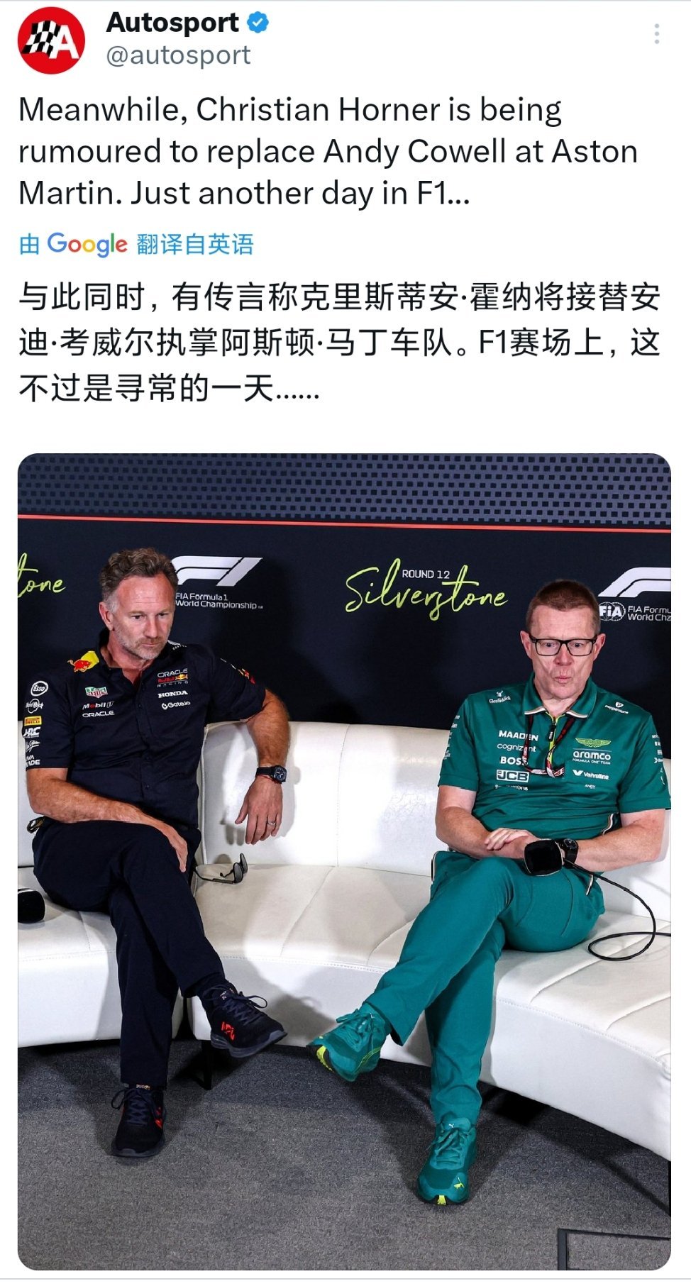 啊?传闻之霍纳接替安迪•考威尔成为阿斯顿马丁车队的领队纽维:啥?