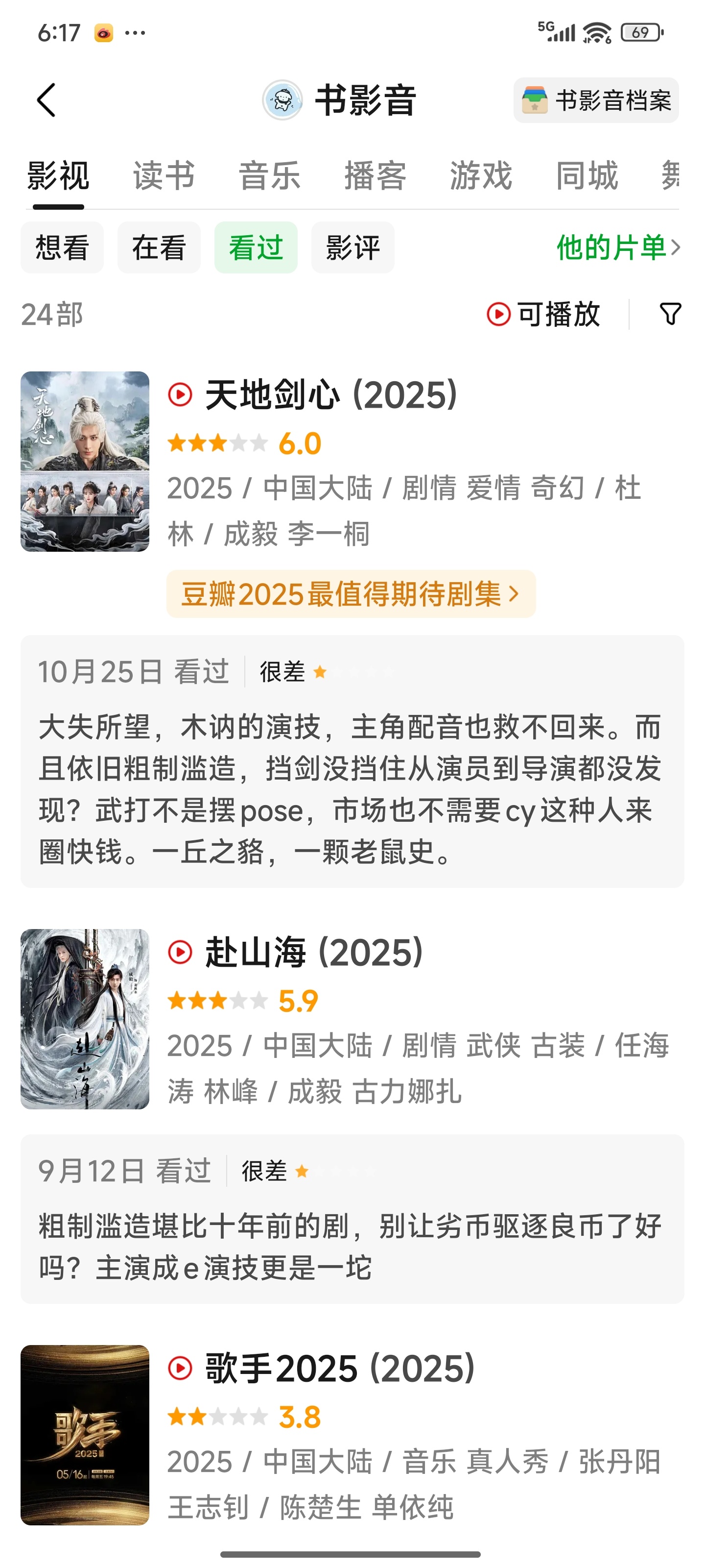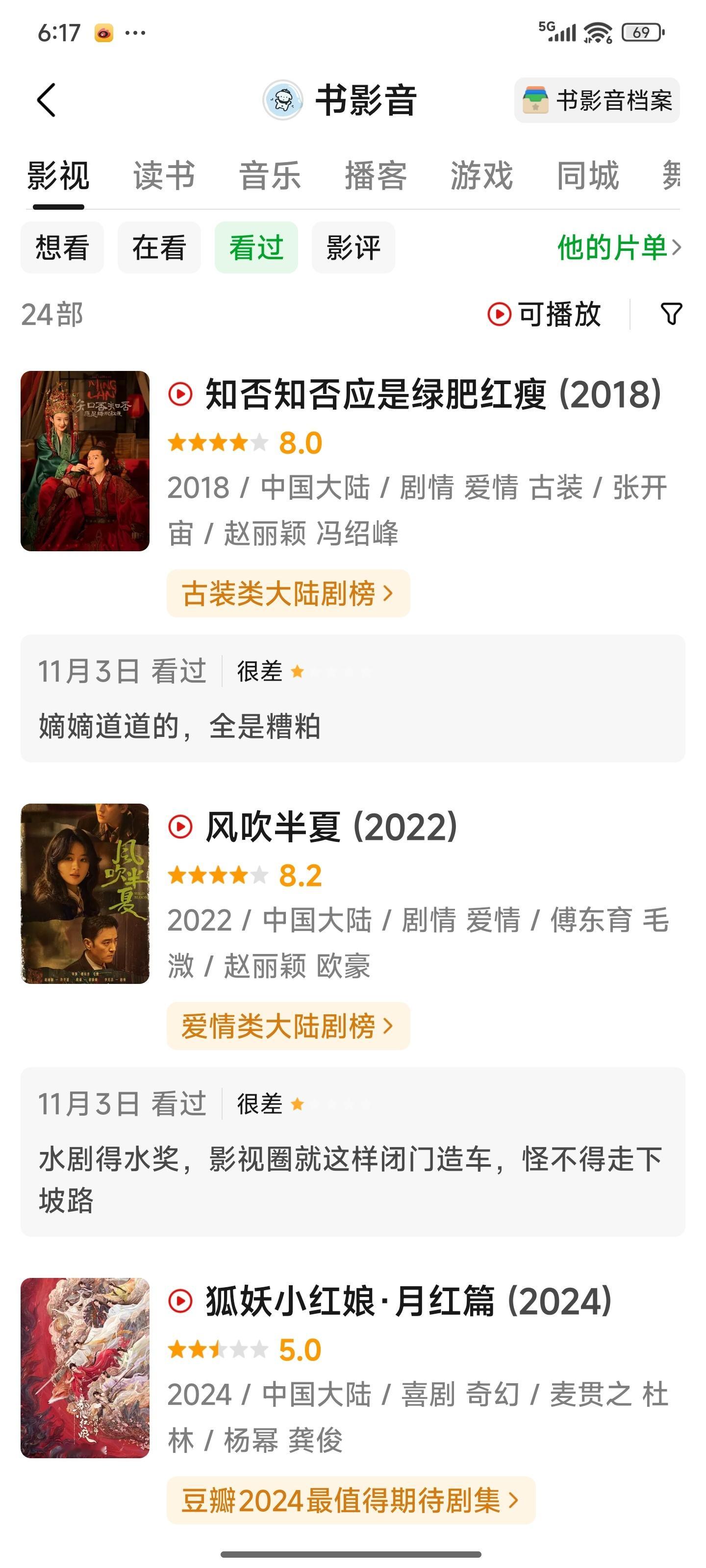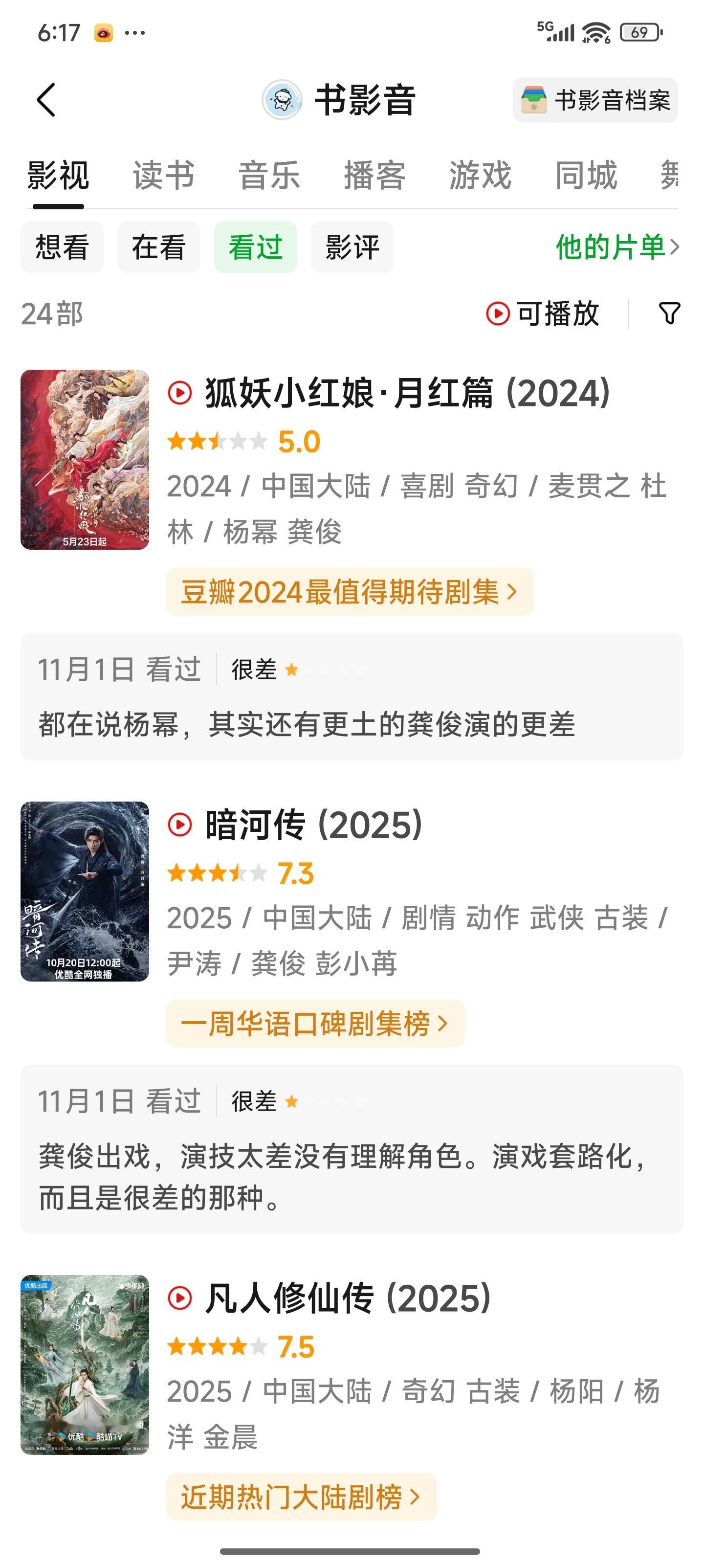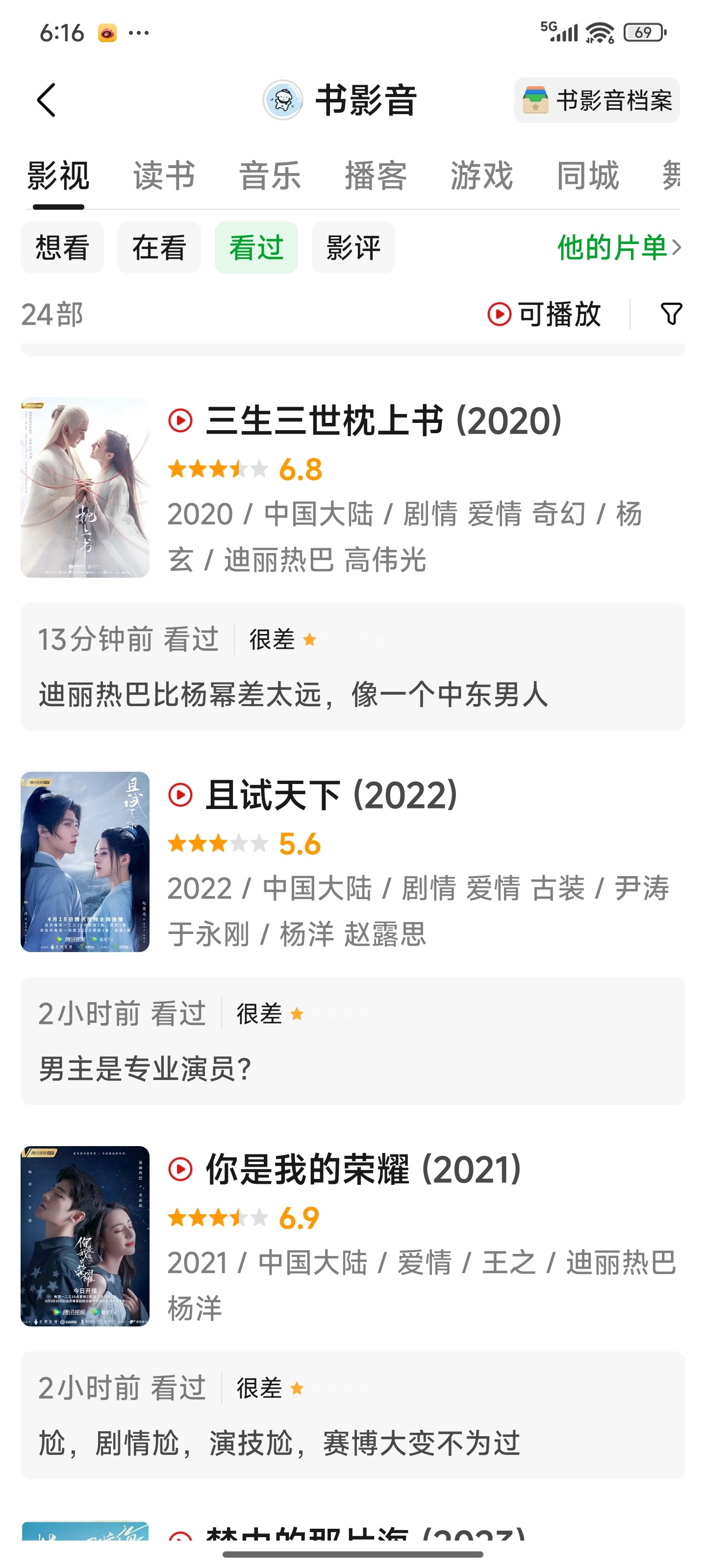这个人给赵丽颖,成毅,热巴,杨洋,檀健次,杨幂,龚俊的剧打了一⭐。