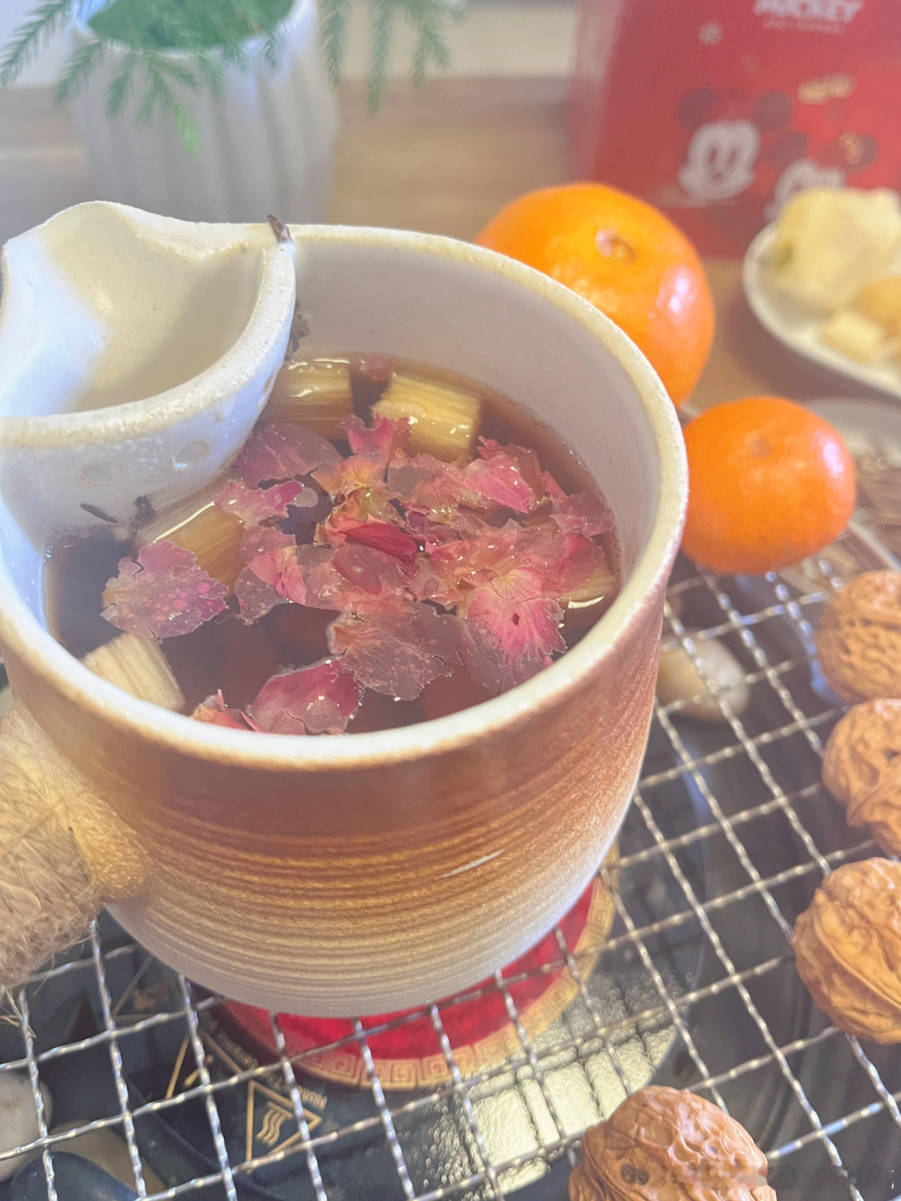 又到围炉煮茶的季节红茶、甘蔗、梨和玫瑰花混着时光的味道慢煮细炖一碗清香四溢的红茶降燥润喉,暖心暖肺