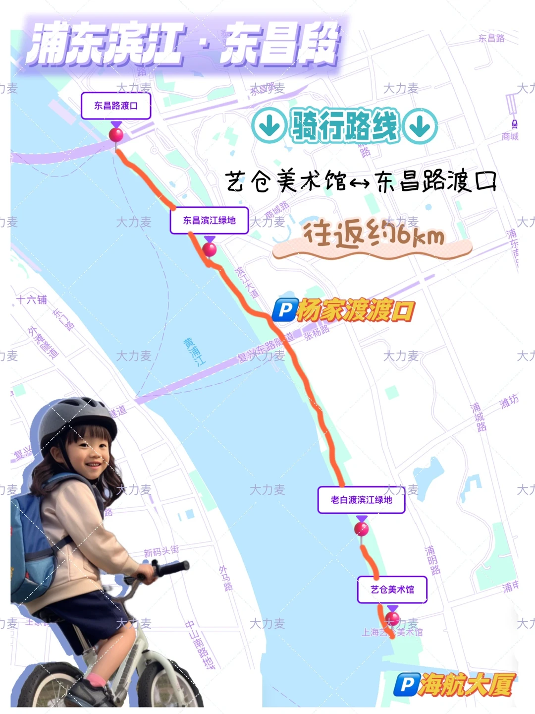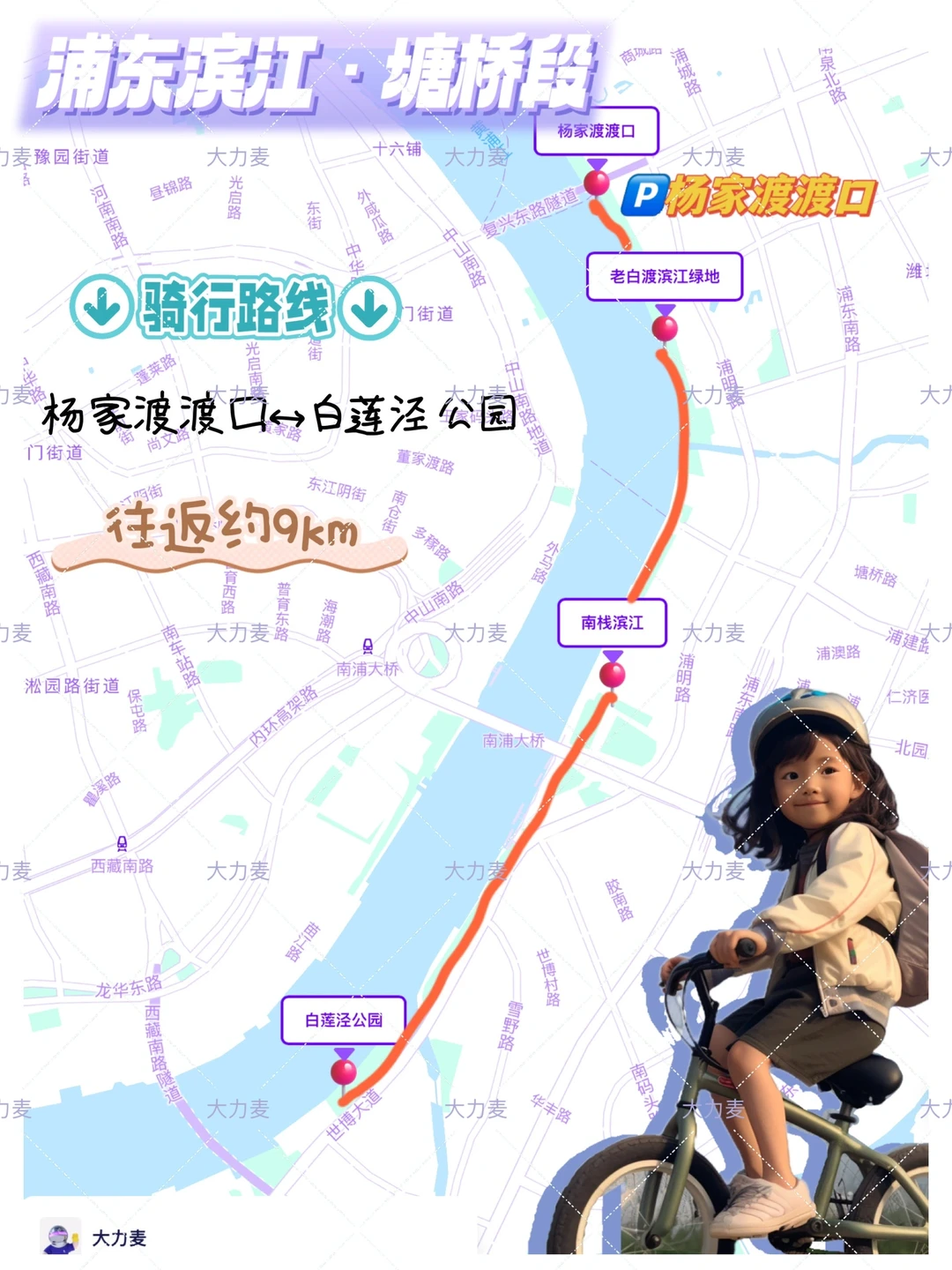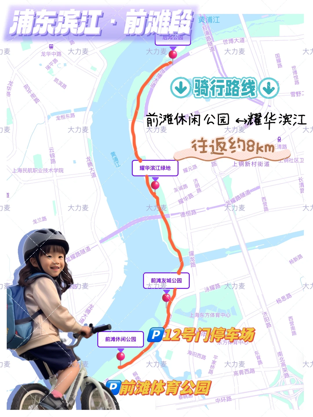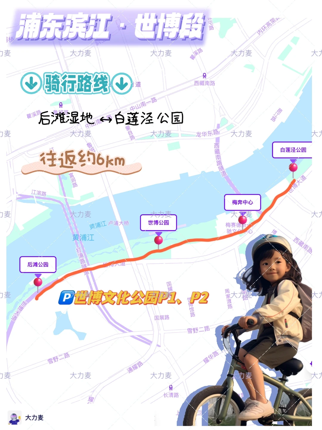 将完整的、单程全长约22km的浦东滨江,从亲子角度做了择优,综合考虑了路段的骑行难度与起点的停车便捷度,想要介绍给大家的5条路线👉