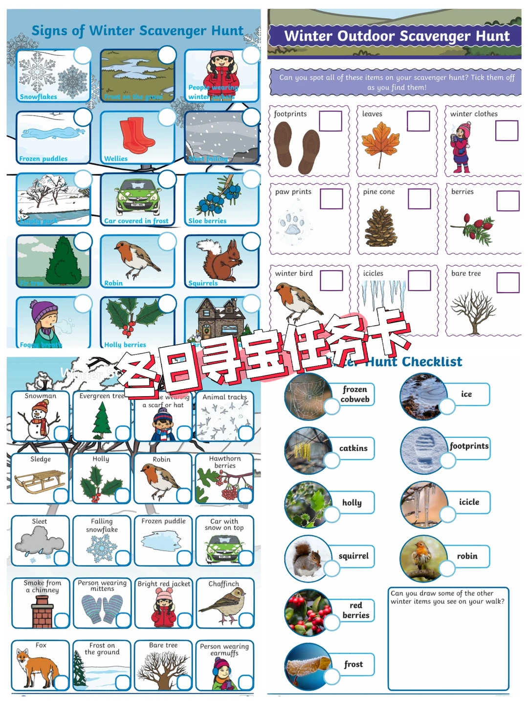 在冬天进行户外探索,同样能收获独特的自然体验🍂🌰🐿️出发之前记得提前打印上一份万能的任务卡(图3自取)✏️