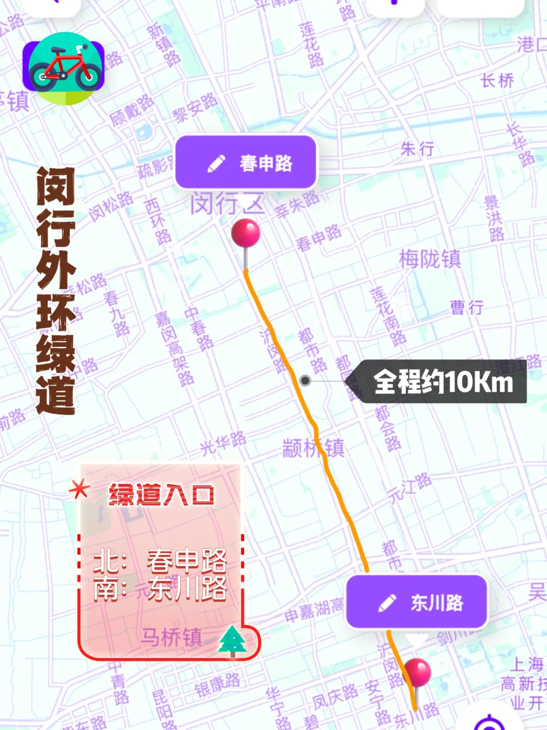 🚴路线:沿沪闵公路南北走向,途径6个地铁站