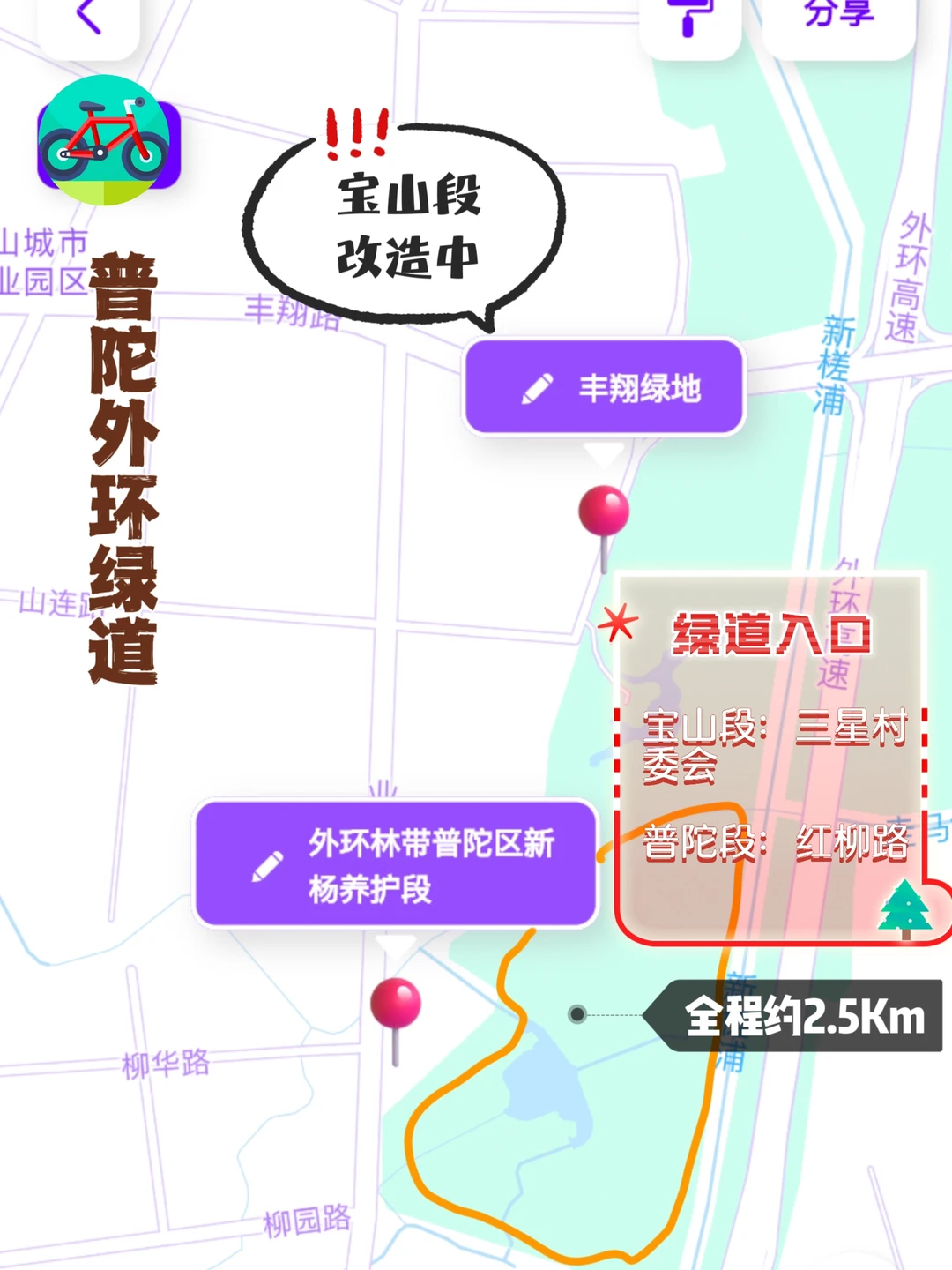丰翔绿地南面森林内的骑行道,可从红柳路入口进入,北面宝山段正在封闭施工,预计到2023年1月底开放。