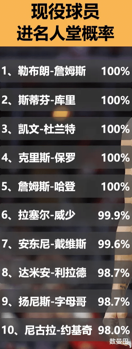 他们进入名人堂概率虽然不是100%