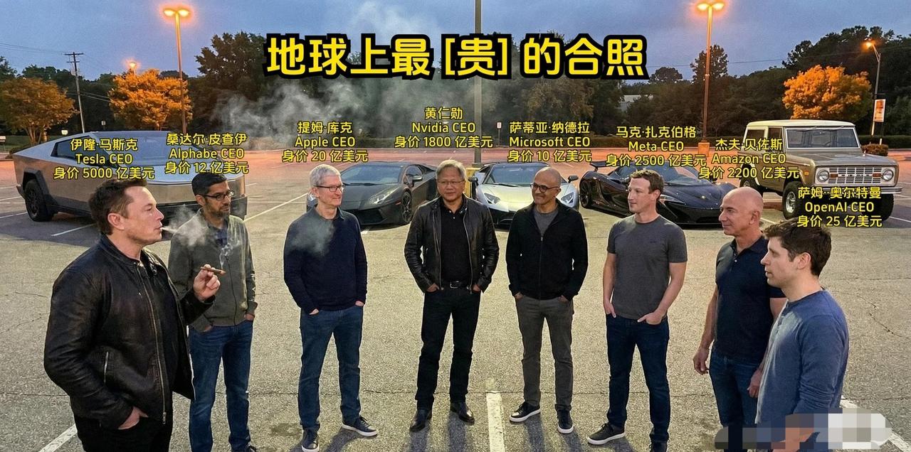 AI现在真是强到可怕,地球上最有钱的几人合影。 他们的财富加起来应该可以超过很