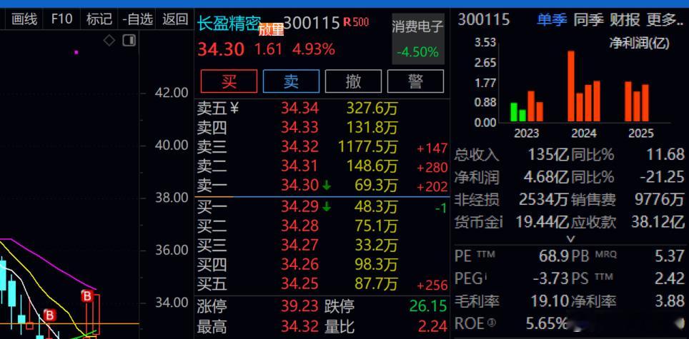 现在我,把格林美出了,然后剩余7橙,全部平分进长盈精密,300,115,君逸数码