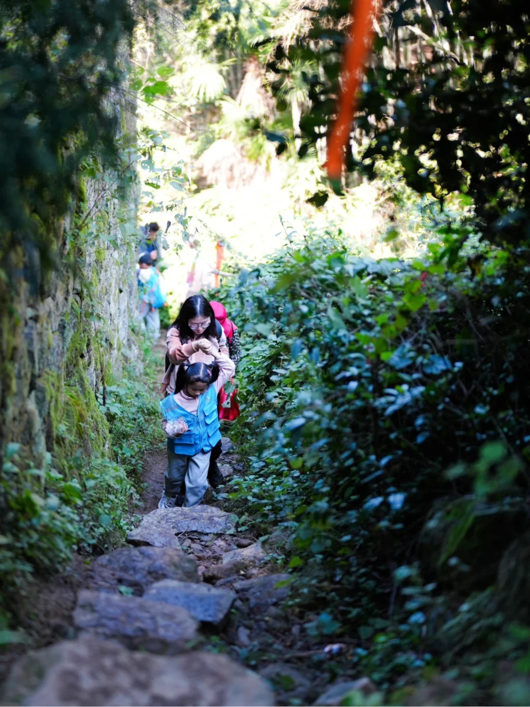 3. 后3.5km:过水库岔路左走水泥路,到上王村公厕后转村民屋后台阶,后续多为香榧林土路,有青苔易滑,需放慢脚步
