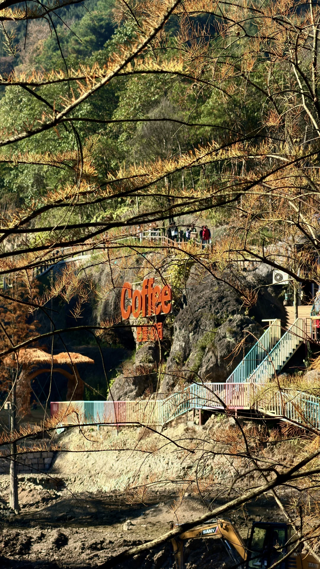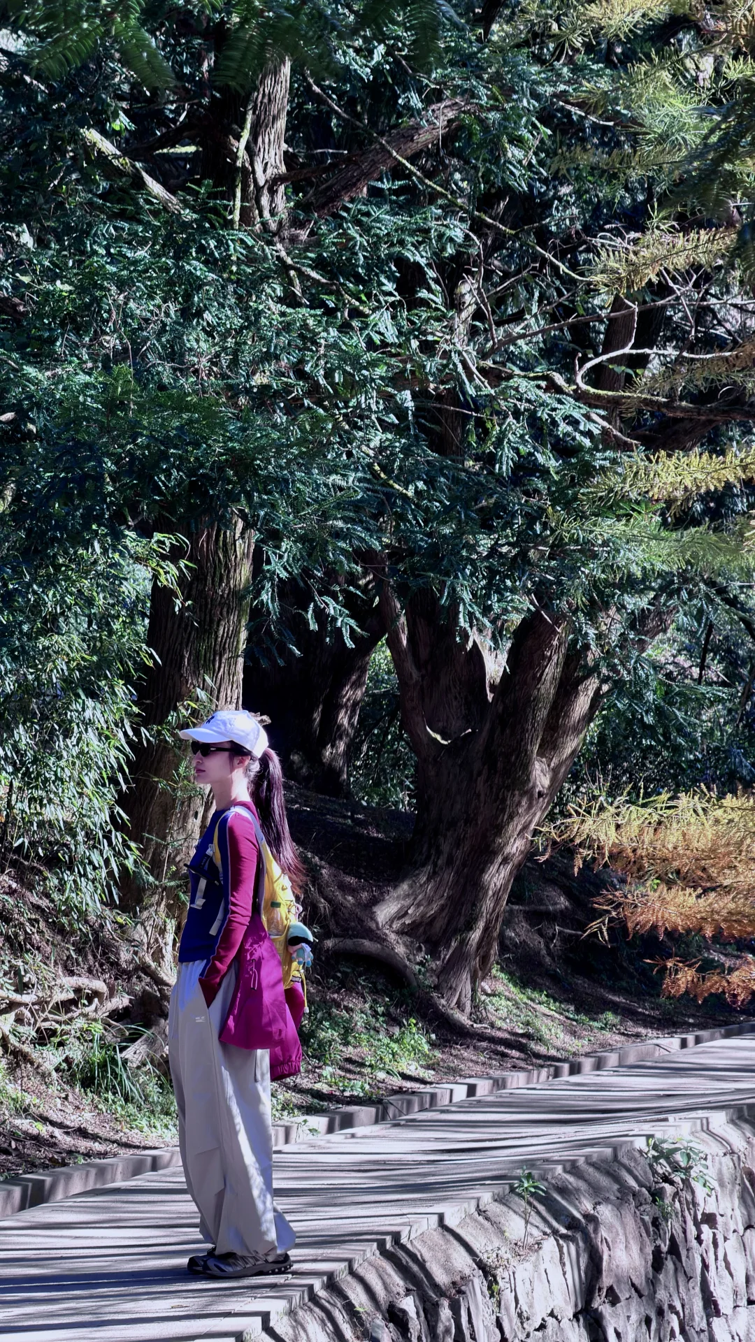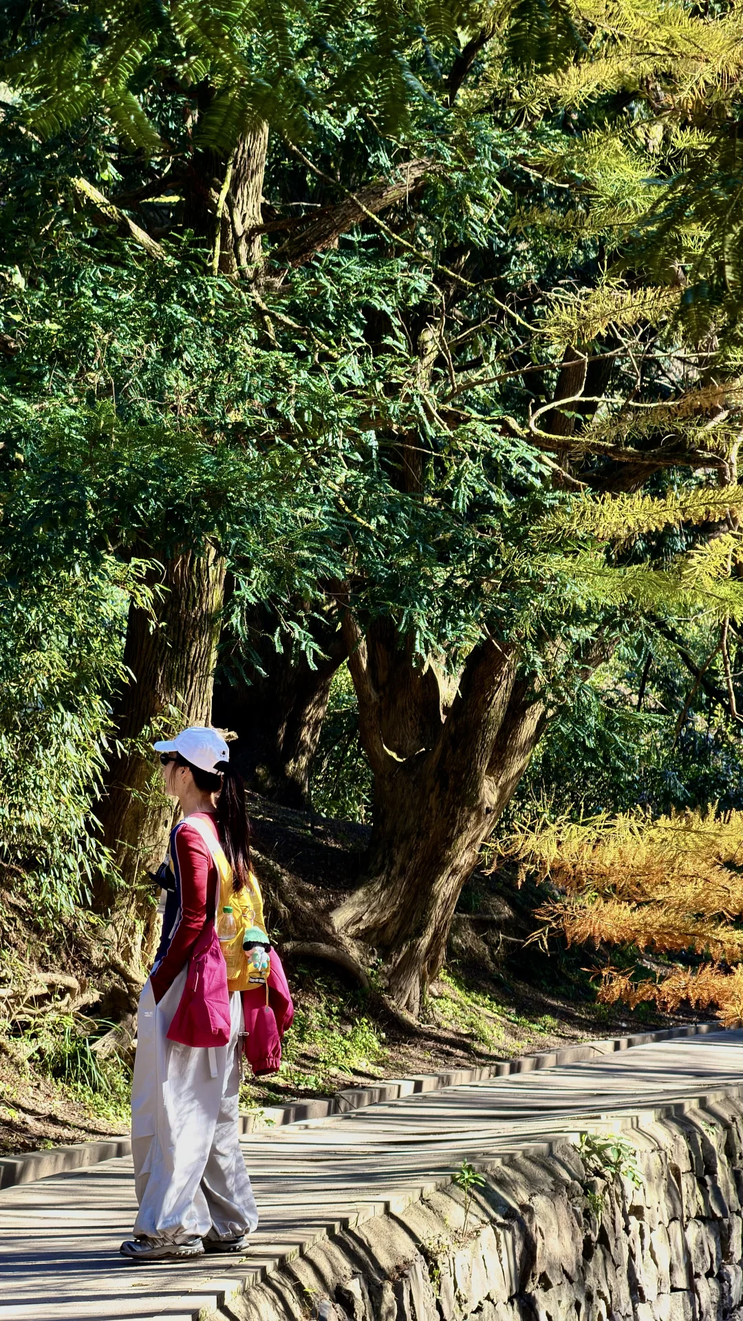 2. 中段1km:登顶观景台俯瞰整片山林,水库水杉林是精华!木栈道穿林而过,水面倒映红杉像油画,无人机拍更出片🧩