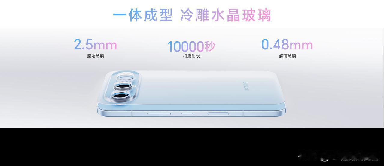 荣耀500系列这次用设计暴击了行业同质化顽疾,四款好运水晶配色直接捅破中端机颜值天花板。 背板采用旗舰级一体冷雕工艺,历经40多道工序打磨出96%透光率,光线下的水晶质感让千篇一律的AG玻璃瞬间黯然失色。更绝的是在7.75毫米机身里塞进超大电池,彻底打破轻薄必牺牲续航的魔咒。 正面直接封杀跑马边框,1.05mm极窄黑边带来无界视野。横向水晶岛镜头模组不仅辨识度拉满,竖屏不挡手横屏更稳持。 Pro版更是配备湿手秒解的超声波指纹,这波细节操作让标准版用户也能享受旗舰体验。 中端机确实不该是妥协的代名词荣耀500双超登场 荣耀500全系一体冷雕工艺