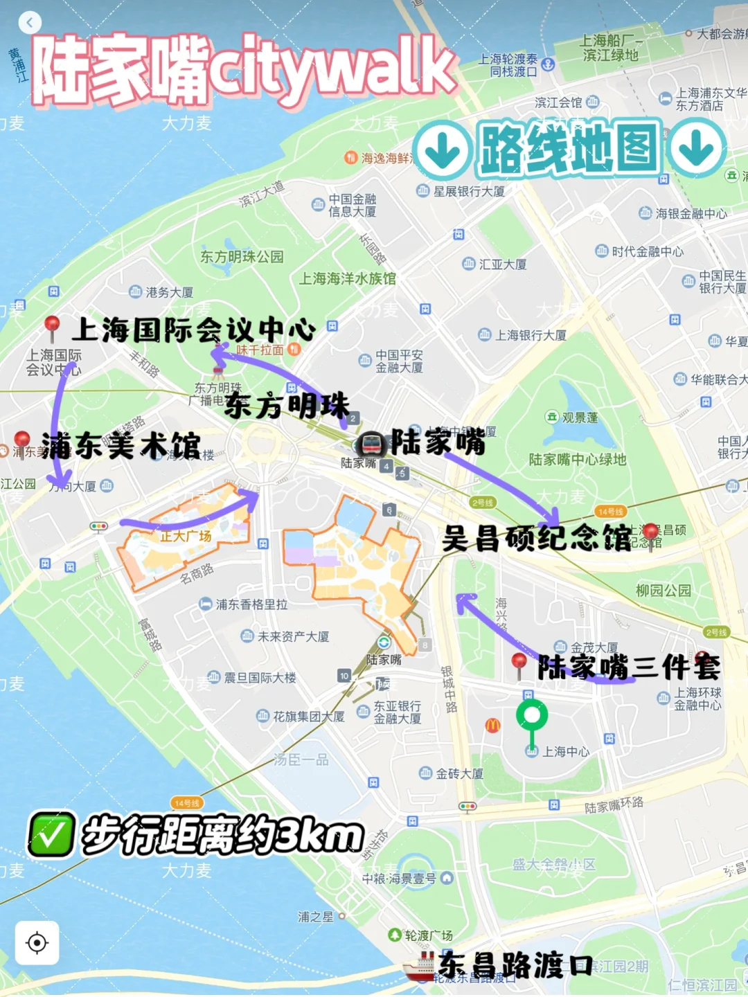 🗺️路线:环球金融中心-上海中心-金茂大厦-陆家嘴人行天桥-东方明珠-上海国际会议中心-浦东美术馆