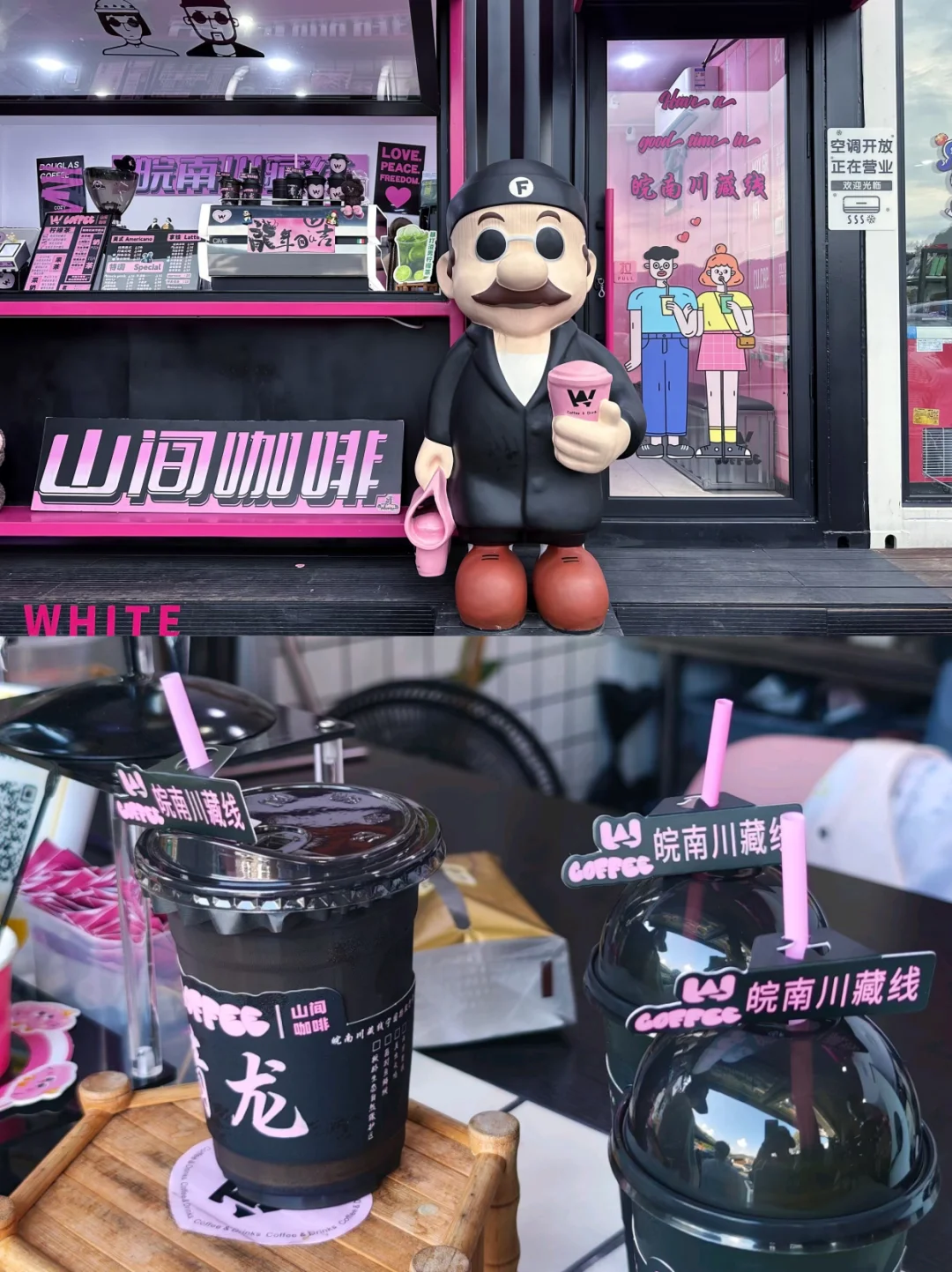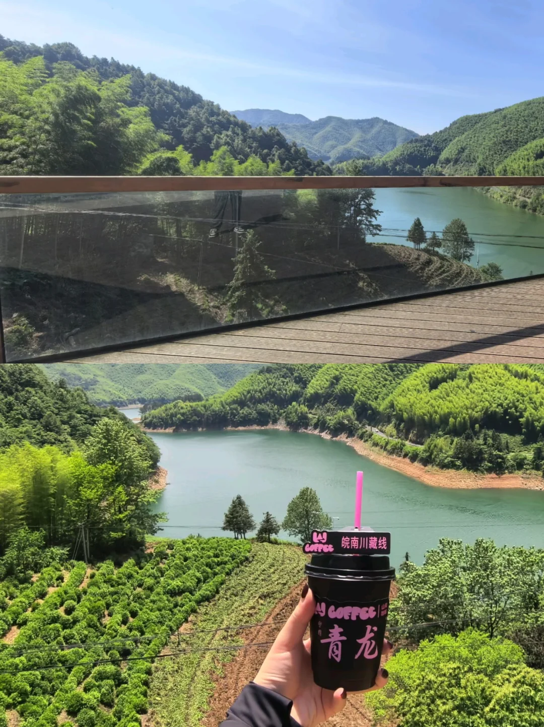 宝子们!在青龙湾发现一家能“沉浸式吸氧”的山间咖啡,来了就不想走! - 👉🏻关于环境: 山间咖啡位于青龙河湾观湖驿站附近 外观黑粉撞色,十分潮流 门口还有可爱的玩偶👧 很适合拍照打卡 - 二楼还有观景露台 座椅的造型独特且舒适👭 和朋友在这里聊天简直不要太爽☺️! - 这里不仅有咖啡 还有果茶和柠檬茶🍹 点好饮品后 可以去观湖驿站拍照留念🤳 让杯子靠近镜头 身后的湖面和青山化作背景 拍照简直绝了! - 来青龙湾观湖驿站的宝子,一定要来山间咖啡!这里的咖啡颜值、口感通通在线,简直是超值体验🙉!