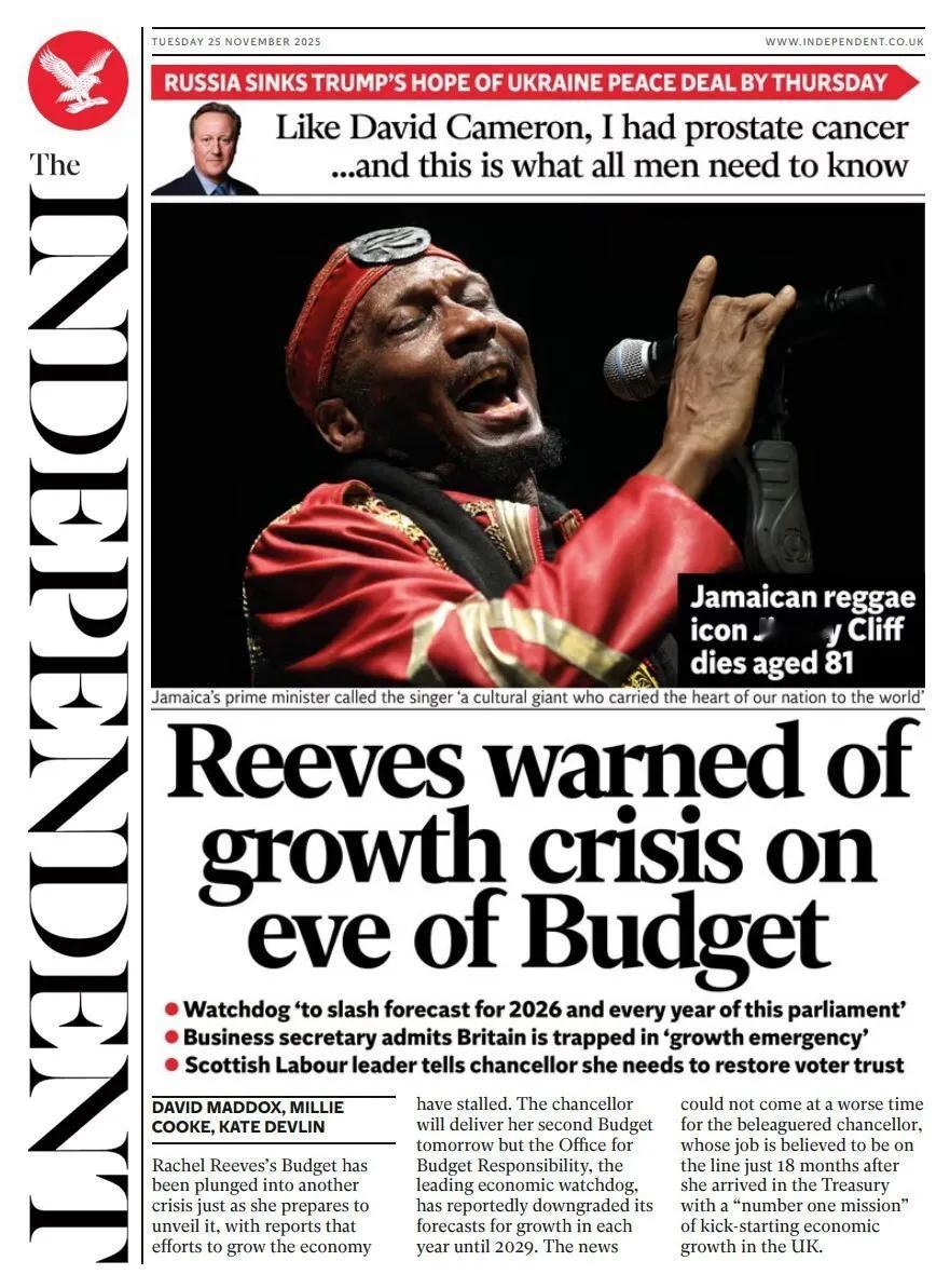 英国经济增长陷入一场“危机”,未来经济发展不容乐观。 《独立报》报道称,英国预算责任办公室一直下调其至2029年的增长预测。 英国财政大臣里夫斯在公布英国政府预算案前夕警告增长危机 ,监督机构“将大幅下调对2026年及本届议会每一年的预测” ,英国商务大臣承认英国陷入“增长紧急状态” ,苏格兰工党领袖告诉财政大臣她需要恢复选民信任。 就在英国财政大臣瑞秋·里夫斯准备公布预算案之际,她的预算案陷入了另一场危机,有报道称推动经济增长的努力陷入了停滞。财政大臣将于明日公布她的第二份预算案,但据报道,主要英国经济监督机构预算责任办公室已下调了直到2029年前各年经济增长的预测。对于这位陷入困境的财政大臣来说,这个消息来得再糟糕不过了,据说在她带着推动英国经济增长这一“首要任务”入主财政部仅18个月后,她的职位就岌岌可危。