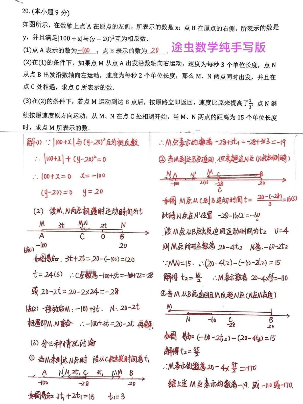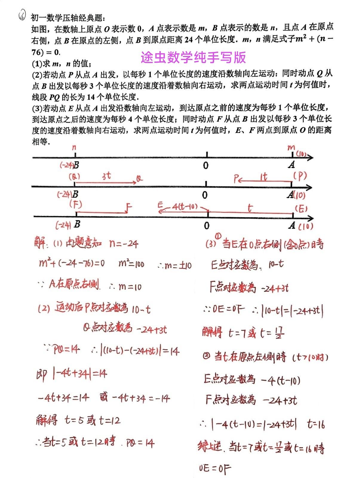 途虫数学纯手写板精品题分享,初一数学上学期最重要的压轴题,数轴上的动点问题。精选了三道题目,供大家留存采用。初中数学 初一数学 数学必考压轴题 26版初中数学中考专项(圆+几何辅助线+二次函数等压轴题专项练习)