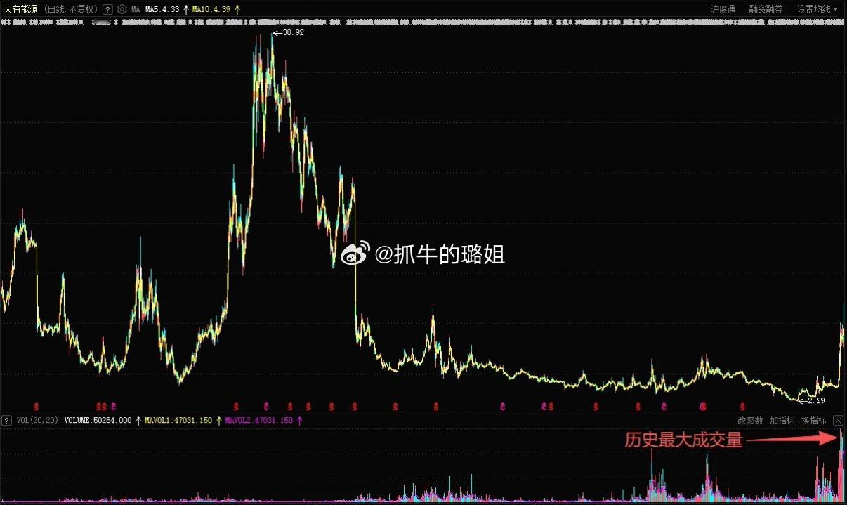 说下怎么看最近高点的成交量,最近一年的最大成交量和历史最大成交量,发现很多散户朋友不理解。以大有能源为例,最近交易日是2025年11月24日,所以要以其为基准,都是在日线图上看。1、最近高点的成交量怎么看大有能源前面最近的高点是2025年11月18日,当天对应的成交量是200.248万手,则200.248万手就是最近高点的成交量。2、最近一年的最大成交量怎么看2025年11月24日往前面一年就是2024年11月24日,所以大有能源最近一年的区间就是2024年11月24日到2025年11月24日。你在日线图上找出这个区间的最大成交量是哪天,把它的值记录下来,你要把K线图缩小看,直到能看到最近一年的整个区间。很容易发现大有能源最近一年的最大成交量是在2025年10月24日,为213.823万手。3、历史最大成交量怎么看就是看它从上市首日到现在,哪一天的成交量最大,那这一天就是历史最大成交量。你要在日线图上,把K线图缩小到直到能看到上市首日,然后直接看下方的成交量指标图,看哪天的成交量柱子最长,那它就是历史最大成交量。把K线图缩小后,我们大致看下最长的成交量柱子是在哪里,然后把光标移动到附近,再找出哪个成交量的柱子最长,然后记录其数值。我们可以发现大有能源历史最大成交量是在2025年10月24日这天,为213.823万手,同时也发现历史最大成交量和最近一年最大成交量重合了。所以最近高点的成交量,最近一年的最大成交量和历史最大成交量有可能是同一天的。熟练以后,把K线图缩小,看下方的成交量柱子的长度,就很容易可以找出这3个成交量。要根据这3个成交量进行交易,最好选择连板强势股,因为强者恒强,趋势类股票比较容易回调。当目前成交量超过历史最大成交量并上涨时,意味着它的资金流入情况超过了历史最大值,也意味着它的交易活跃情况超过了历史最大值。关注我,我是璐姐,每日只分享最实用的短线炒股干货。作品声明:个人观点,仅供参考;文中的股票只作为案例分析,不作为投资建议。