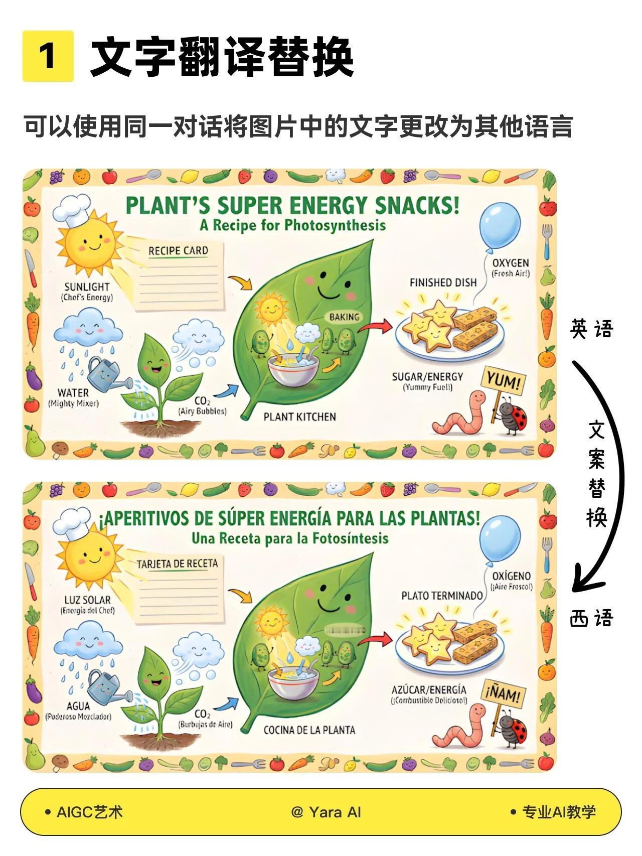 简直强的没边!Nano Banana 更新了 Pro 版本,除了搭配 Google 的检索能力,更让人开心的,生图稳定性的提高,真是比什么都强~这里Yara为大家列举了 8 个常用的方法:1️⃣文字翻译2️⃣参考图融合3️⃣添加/移除元素4️⃣局部重绘5️⃣风格迁移6️⃣高级合成7️⃣草图优化8️⃣角色多角度生成