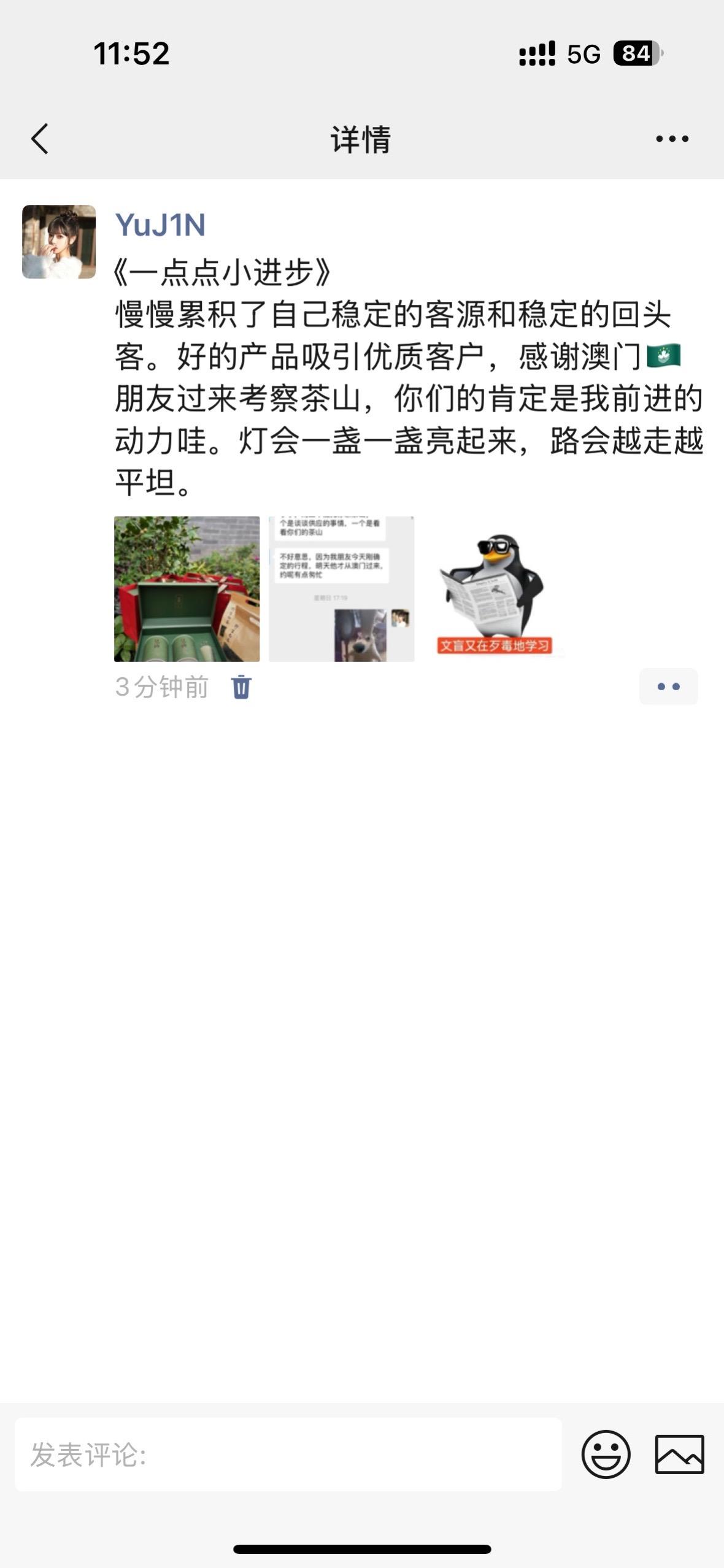重返快乐老家 打工人也要努力 从nku毕业生到茶山主理人,每一步都算数。慢慢累积了自己稳定的客源和稳定的回头客。好的产品吸引优质客户,感谢澳门🇲🇴朋友过来考察茶山,你们的肯定是我前进的动力哇。灯会一盏一盏亮起来,路会越走越平坦。