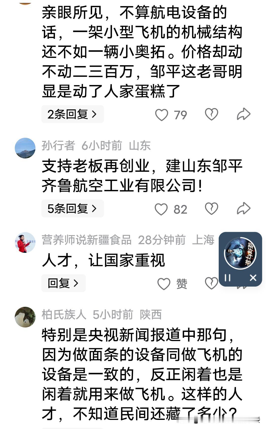 山东“三无手搓飞机”事件引发广泛关注。这事儿处理不好,山东的形象可真要受影响了。 央视曝光后,邹平成立多部门联合调查组调查,还全市排查,这态度值得肯定。但后续处理不能仅停留在表面。“三无飞机”不仅违反规定,还暗藏致命风险,必须依法依规严惩违规者。 不过,换个角度看,民间有造飞机的热情和创造力,也不该一棒子打死。可以给予适当扶持,引导其合法合规发展,比如帮助办理相关许可,提供技术指导。这样既能解决问题,又能把民间热情转化为推动低空经济发展的动力。
