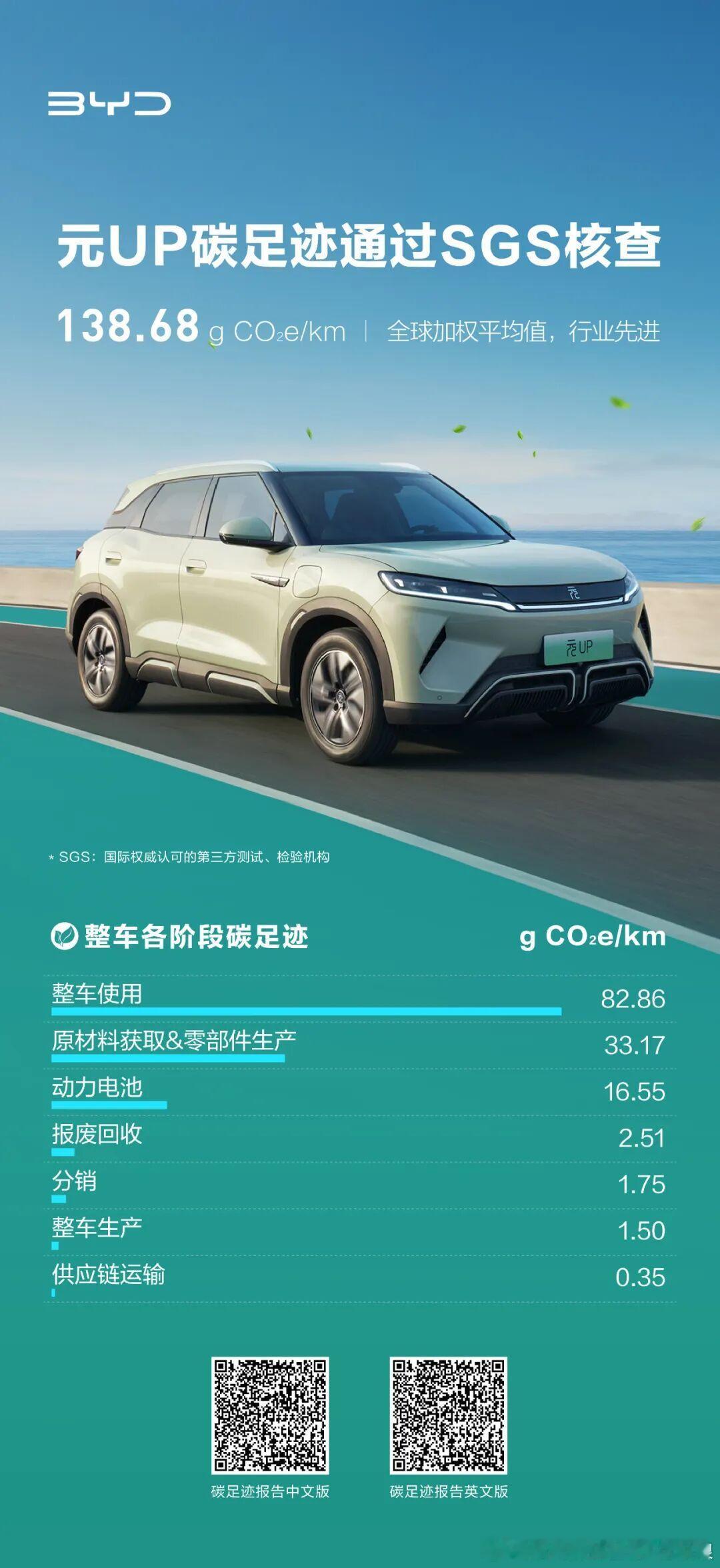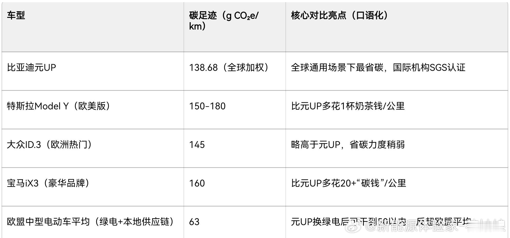 现在电动车也有‘排碳账单’,普通电动车开1公里,相当于给环境‘花’269块(碳排放),但比亚迪元UP才花138块——直接省了一半!这数还是国际机构查过的,没掺水~再掰扯这138块咋花的:开车用电占了82块(毕竟发电也有碳),剩下买材料、造零件花33块,电池本身16块,至于造车、运车、报废这些,加起来才不到6块,基本等于没花钱。总结就是:这车上路比别人省一半‘碳钱’,而且就用电那块花得多点,其他环节都抠得很~比如你买“环保出行套餐”:特斯拉Model Y(欧美主流):开1公里的碳账单是150-180块(不同版本略有差异);大众ID.3(欧洲热门):碳账单约145块/公里;宝马iX3(豪华品牌):碳账单得160块/公里;而元UP只要138块/公里——比这些国际车型都便宜,相当于“同样开1公里,元UP比Model Y少花1杯奶茶钱”。再看欧盟的“行业平均套餐”:中型电动车碳账单是63块/公里?(注意:这是欧盟“用可再生电+本地低排放供应链”的特殊情况),但元UP是全球加权平均(包含高排放地区用电),如果把元UP放到欧盟用绿电,碳账单能直接干到50块以内,比欧盟平均还省。简单说:在“全球通用套餐”里,元UP比国际主流电动车更省碳;要是去欧盟“换绿电套餐”,它能卷赢当地车型。