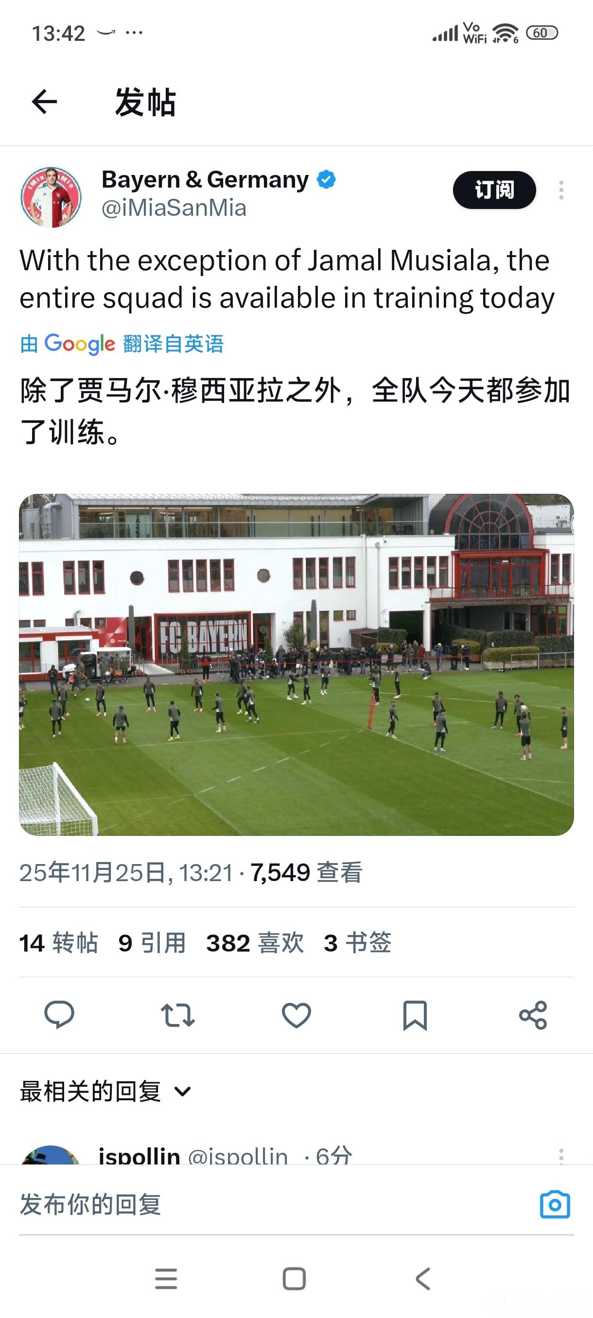 [今天除了穆夏拉,其它球员全部参加了训练]加油!