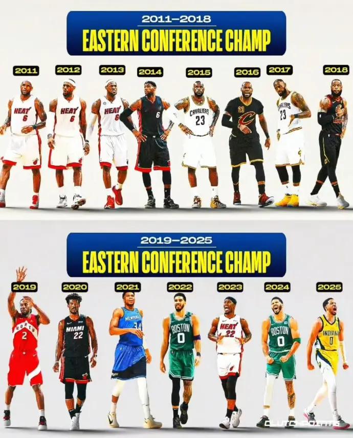 美媒晒图:NBA近15个赛季中的东部冠军詹姆斯8连冠,诠释了什么叫做统治力!