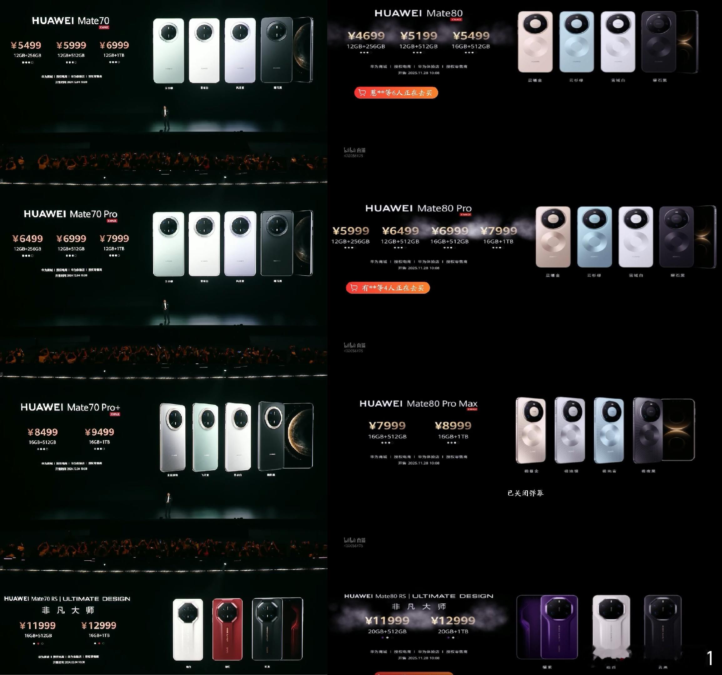 华为mate80及全场景新品发布会,快速总结!比红米都便宜!第一,那个曾经诚意十足的价格屠夫华为又回来了,价格让我震惊的目瞪口呆,同储存配置,mate80标准版相比前几代降价900元,pro与promax相比前几代降价500元,太夸张了!而且还有鸿蒙日日新红包,这个红包领完最少也有100现金收益,最多1000,我的purax当初是领了280多。Mate80标准版相当于直降了1000以上,Mate80标准版比红米旗舰都便宜了,这下谁也无法质疑华为推广鸿蒙生态的决心了!而且这还是在产品力与配置大幅度提升的情况下降价,这一招非常像当初23年问界m7王者归来,疯狂降价增配。配置非常全能的二合一平板电脑matepad Edge的价格也低的超乎想象,居然是5999起售的,绝对超级卖爆,这牛逼玩意如果是苹果首发的,起售价至少15000以上。各种友商高管开发布会都在抱怨什么内存大幅度涨价,它们手机也要跟着涨价,连红米都冲高端了,结果华为疯狂降价,难道华为的内存与尔等的内存不一样?从mate80的疯狂定价,可以推测出华为下个月要发布的nova15价格一定对友商来说非常可怕,高配低价无悬念。第二,mate80标准版已经非常给力了,影像能力大幅度提升的第二代红枫影像+3D人脸+满血麒麟9020+全金属机身+超可靠玄武架构;当然,性价比超高的是mate80 pro max,5个超强悍的镜头,无论进光量,动态范围,色准还原,长焦微距潜望变焦,都是顶级的,影像提升太牛逼了,和非凡大师完全一致的模组,第二代双层oled华为灵珑屏,8000nit亮度,护眼能力还提升20%,这才是真正的pro max;最无敌的是mate80非凡大师,和 pro max有六个区别:1、设计材质与架构;2,屏幕是比pro max还要更好一点的第二代双层oled BT.2020超广色域屏幕;3,20G内存;4,三振膜防漏音;5,性能比pro max高3%,它提升是45%;6,5A信号5db,比pro max多2db,信号强度几乎是某友商17的三倍!Mate80pro搭载的是麒麟9030soc,性能相比9020提升35%,promax与非凡大师搭载的都是麒麟9030 pro soc,性能相比9020提升42%!第三,MateX7,非遗云锦的设计非常好看又充满艺术人文气息,它的性能和直板机mate80 promax完全一致,什么超可靠玄武架构,麒麟9030pro,5A速度快人一步,卫星通信,无网应急通信,户外探索模式,最牛逼的是它的影像能力,首次实现了折叠屏对业界主流旗舰直板机的超越,影像比友商17更好!作为折叠屏不损失影像性能, 只有华为能做到。第四,余总强调了鸿蒙6生态应用已经完善了,通过两年的不断进化,已经从鸿蒙5的能用,变为目前鸿蒙6的好用了,纯血鸿蒙设备已突破2700万台,现在的卓易通更是所有应用都有,甚至连出国都非常好用,支持高达30万+的环球畅游应用及元服务。余总还强调了mate80具有很好的游戏性能,鸿蒙6+方舟调度引擎+麒麟9030,打手机大型游戏,诸如原神三角洲和平精英等,完全不在话下,加载启动快,非常丝滑流畅且温控好,以后谁在说什么华为手机打不了游戏就是纯造谣。我目前就在用鸿蒙6的puraX当主力机,无论打游戏还是刷视频都非常爽,我可以非常负责任的说,大家可以放心升级鸿蒙6,现在没什么不能用的。只有一种人群,建议你先去线下体验下再说,就是网店商家,我听说网店商家有部分功能还受限,但我自己不是,所以如果你是网店商家想买mate80,可以先去线下试下啥情况,因为现在卓艺通都拉通了,即使纯血鸿蒙有应用功能不全,卓艺通版也是全的。第五,余总与何刚还发布了紫金非凡大师手表,瑞红折叠电脑,110英寸matetv max,日照京山路由,freebuds pro5耳机,watchd2与ultimate2手表 ,matebook pro等新品,全都非常具有吸引力,尤其是紫金非凡大师手表,那个颜值质感,无敌!奈何我买不起,就说下2000元以下的两款产品吧。日照金山路由器,灯效能够自动随着冷暖光无极调节,行业首发三代透明天线,pLC+mesh双链组网,双频无缝漫游,信号穿墙非常牛逼,艺术与性能兼具,超喜欢,我已经买了,我老婆下定了mate80 pro max。freebuds pro5耳机,我已经有了freeclips2,就不买了,但freebuds pro5确实非常强,行业内首款拥有母带级无损空间音质的无线耳机,星闪传输,双向降噪还超厉害,入耳式耳机中的王者。最后,何刚公布了近期鸿蒙6设备的升级计划,没升级的抓紧升哦!