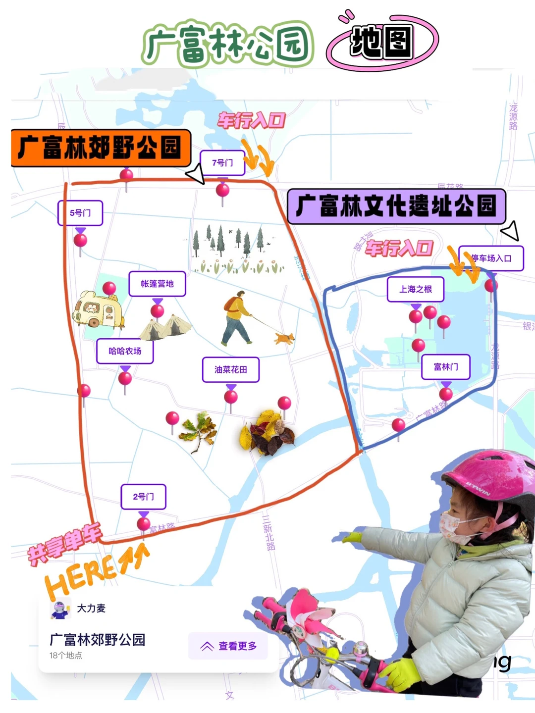 🚴♀️路线:园内骑行路段、上海之根打卡点(图6地图红线)