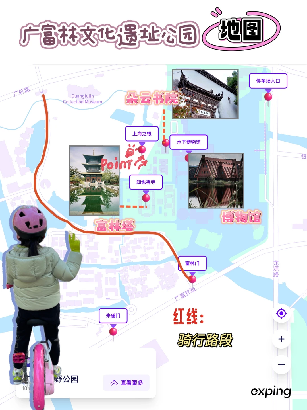 于是在周末的午后,安排了一场“疫情错峰”亲子骑行,来开发一下广富林的🚴🚴路线