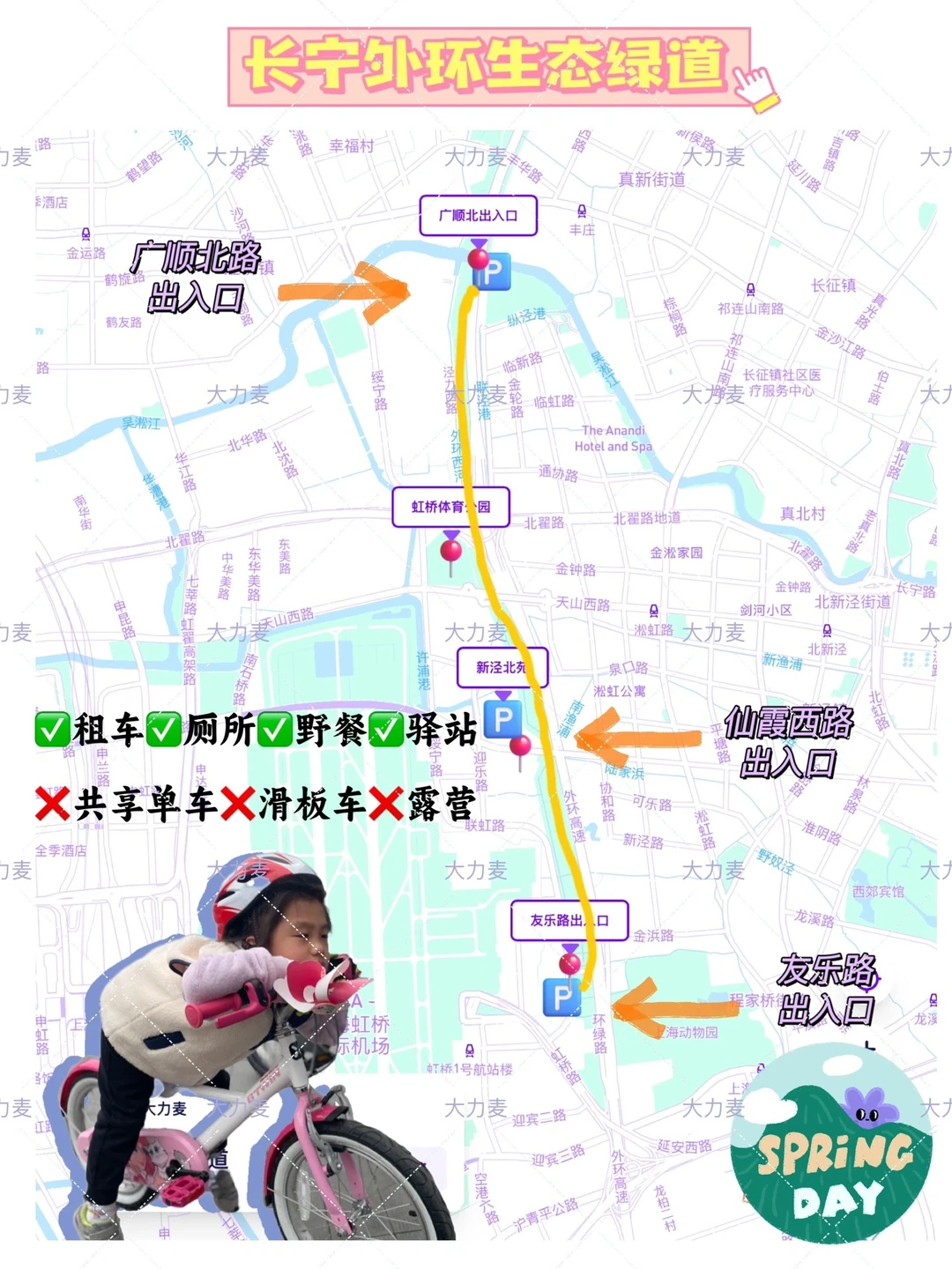 ✅绿道非环线,对于自驾出行的亲子家庭,需要预估从停车点出发的往返路程;