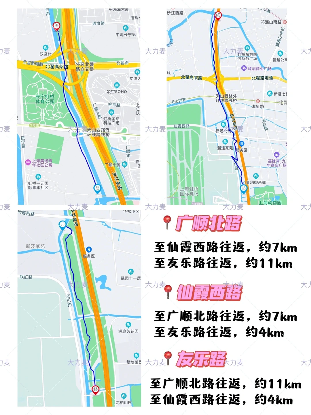 ②广顺北路-仙霞西路,主路去,林中小路返,全程约7km;