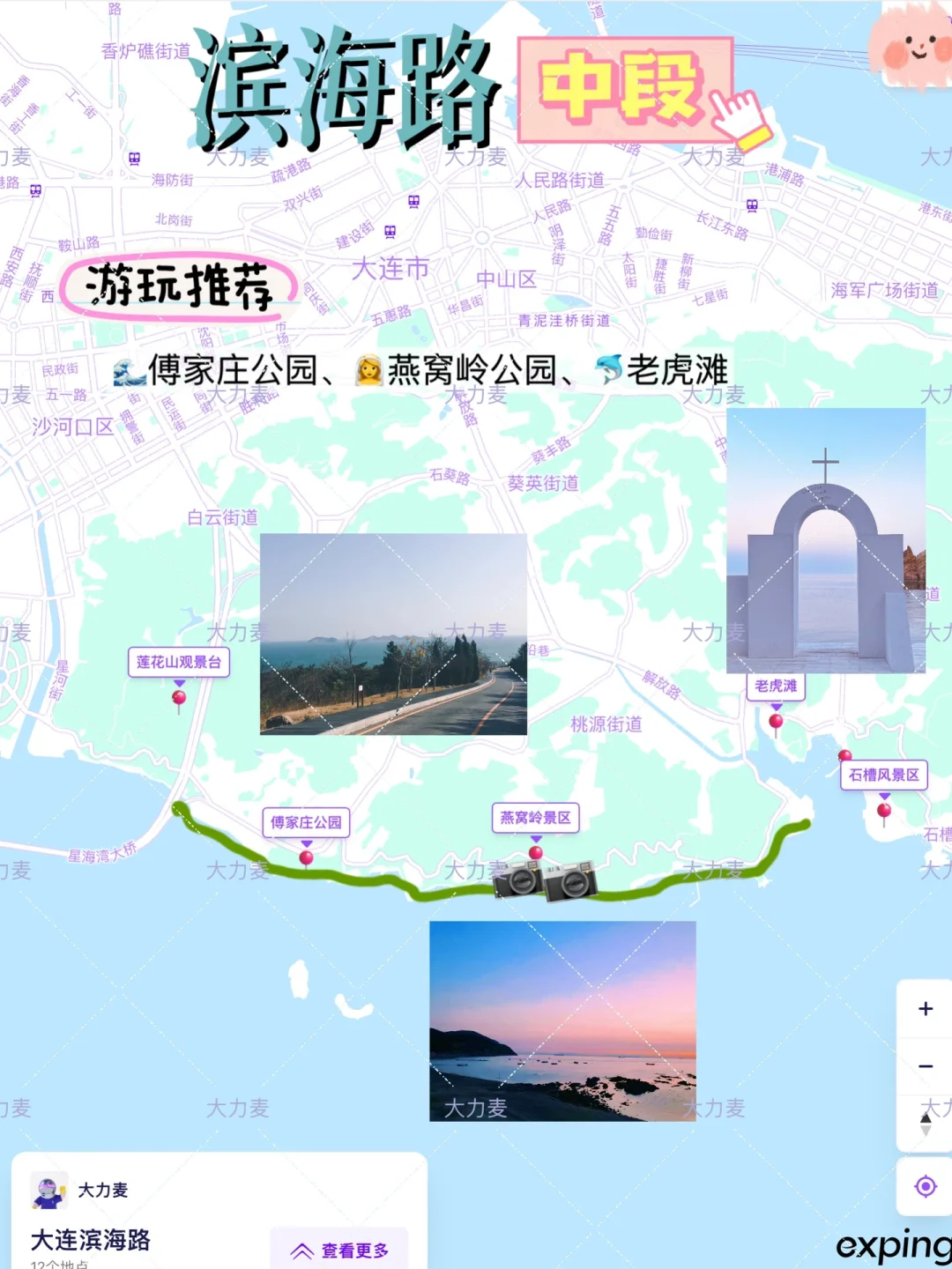 🌊游玩路线:付家庄公园-燕窝岭-老虎滩