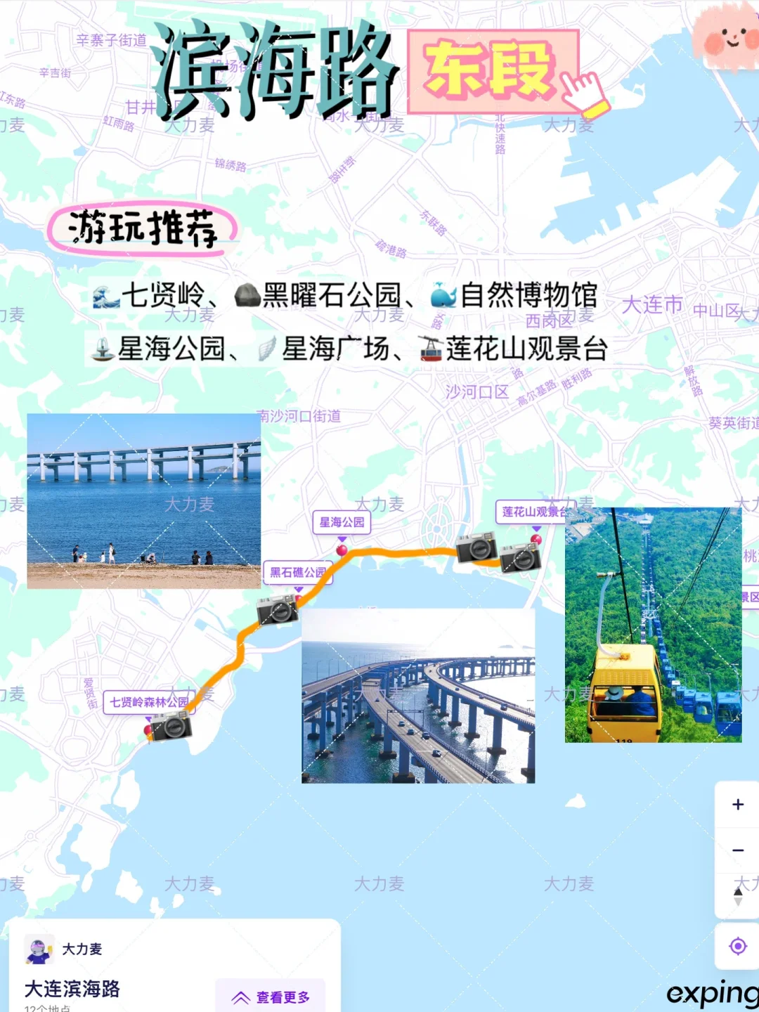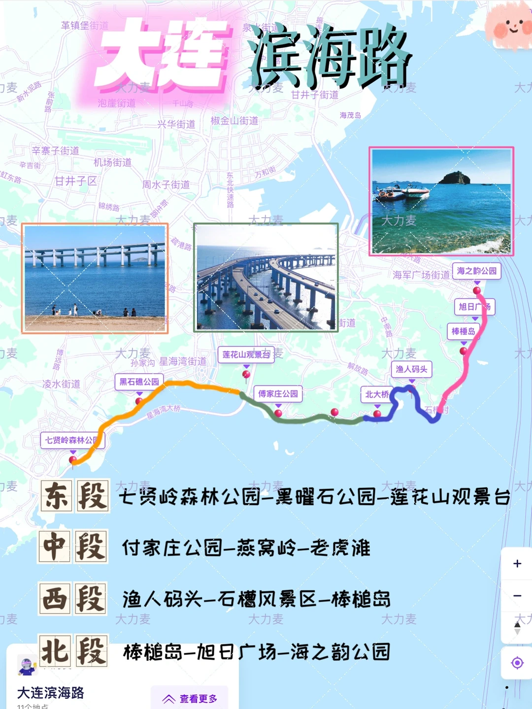 🌊游玩路线:七贤岭森林公园-黑石礁公园-星海公园-莲花山观景台