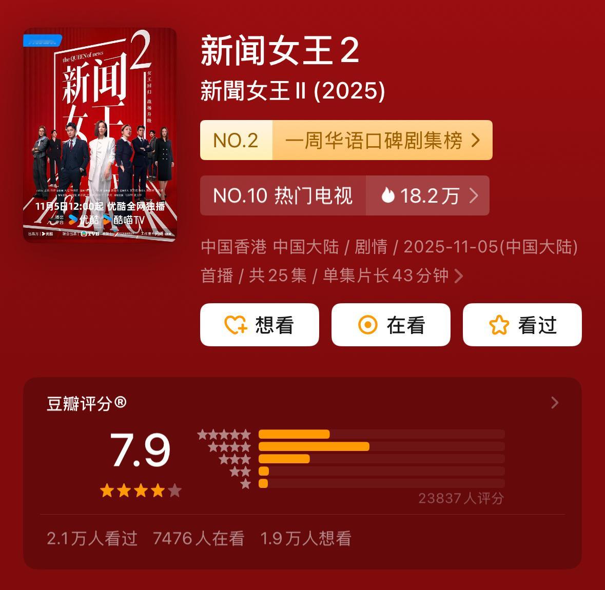 近期豆瓣开分剧集,符合体感吗?