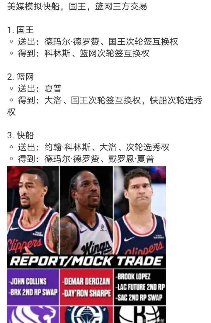 都烂成这样了 还有啥不能接受的,反正夺冠无望 这笔交易要是做完,后续可以拿祖巴茨+邓恩交易库明加+2首轮+2互换,再拿库明加+小卡+2首轮+2互换交易字母哥+库兹马,最后拿小琼斯+次轮交易格兰姆斯,这样主力变成哈登+格兰姆斯+德罗赞+字母哥+夏普,替补变成保罗+桑德斯+米勒+库兹马+巴图姆+尼德豪泽+布朗。