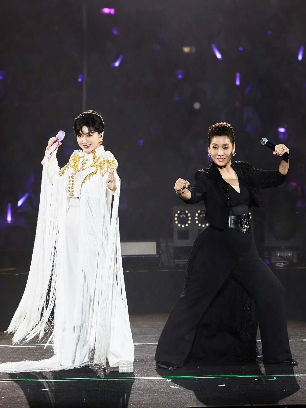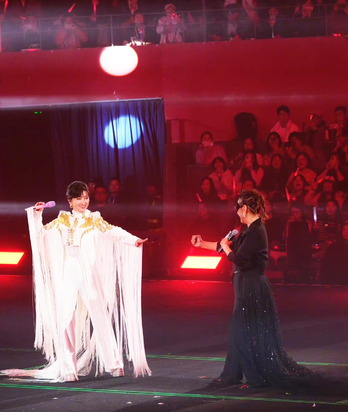 《上海滩》女主角冯程程的扮演者@赵雅芝 《射雕英雄传》女主角穆念慈的扮演者@杨盼盼 同台,表演节目[比心]