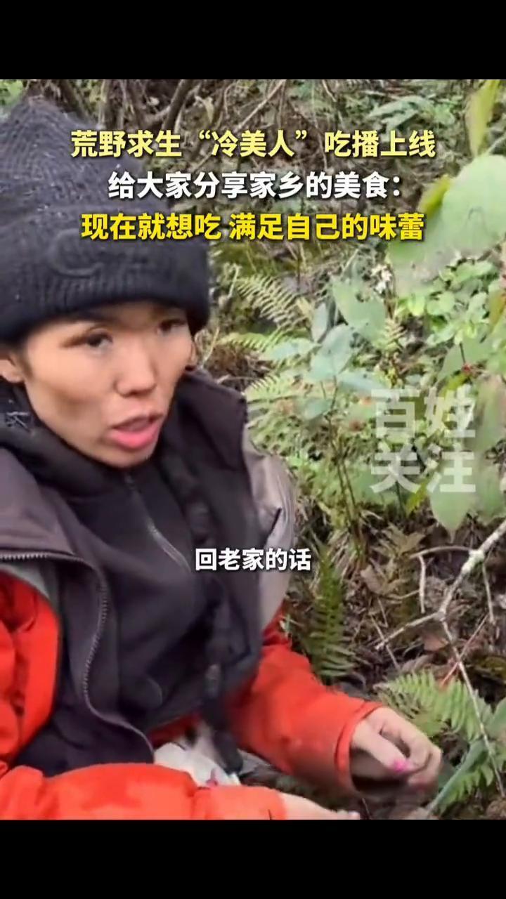 荒野求生"冷美人"吃播上线,现在就想吃满足自己的味蕾。 给大家分享家乡的美食:木