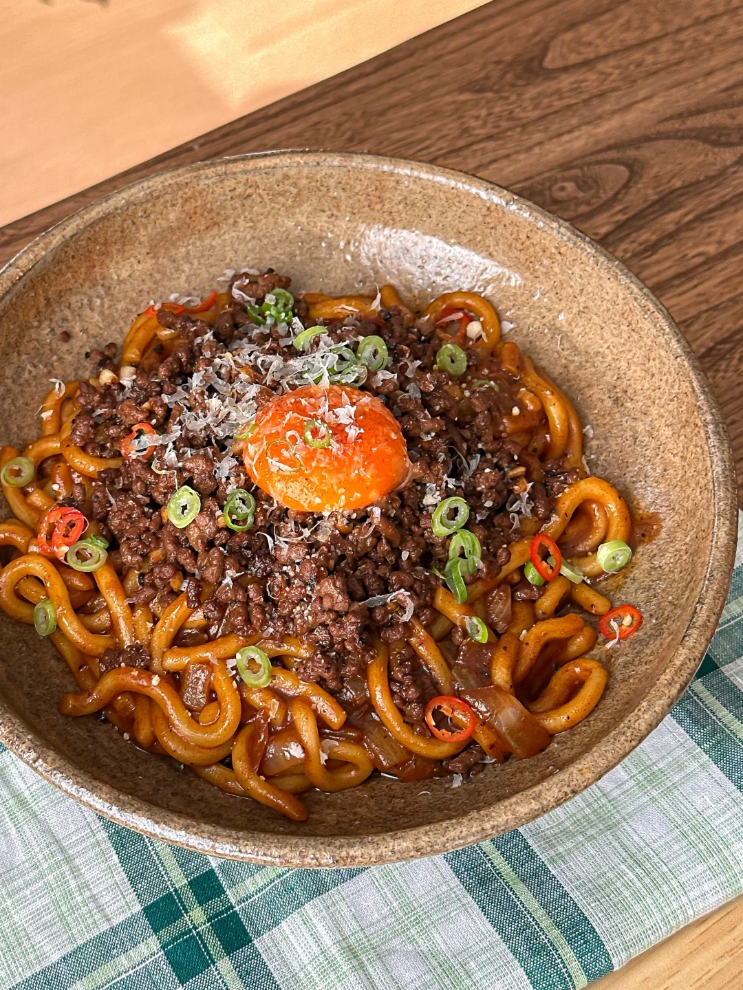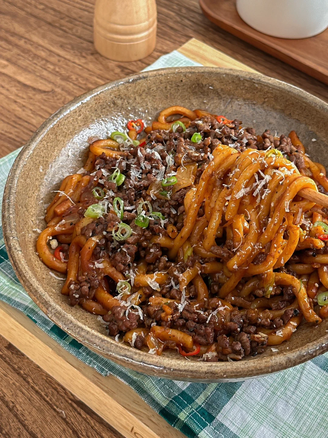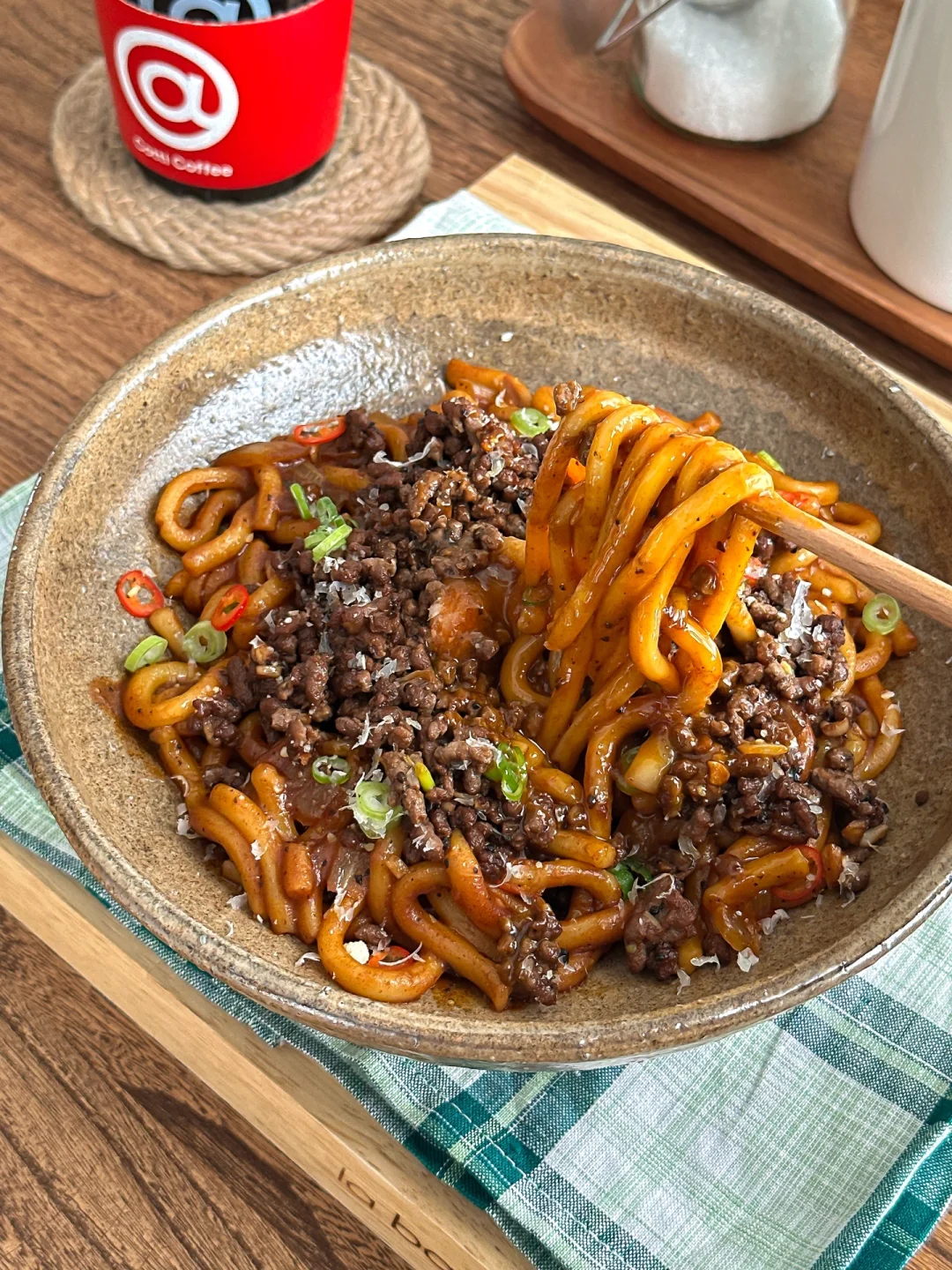 每根粗面都裹满了浓郁的辣咖喱酱汁