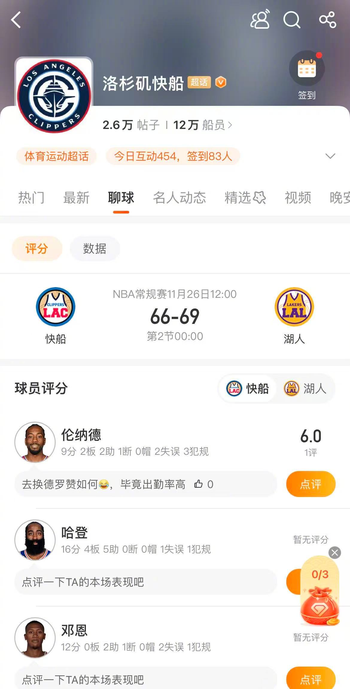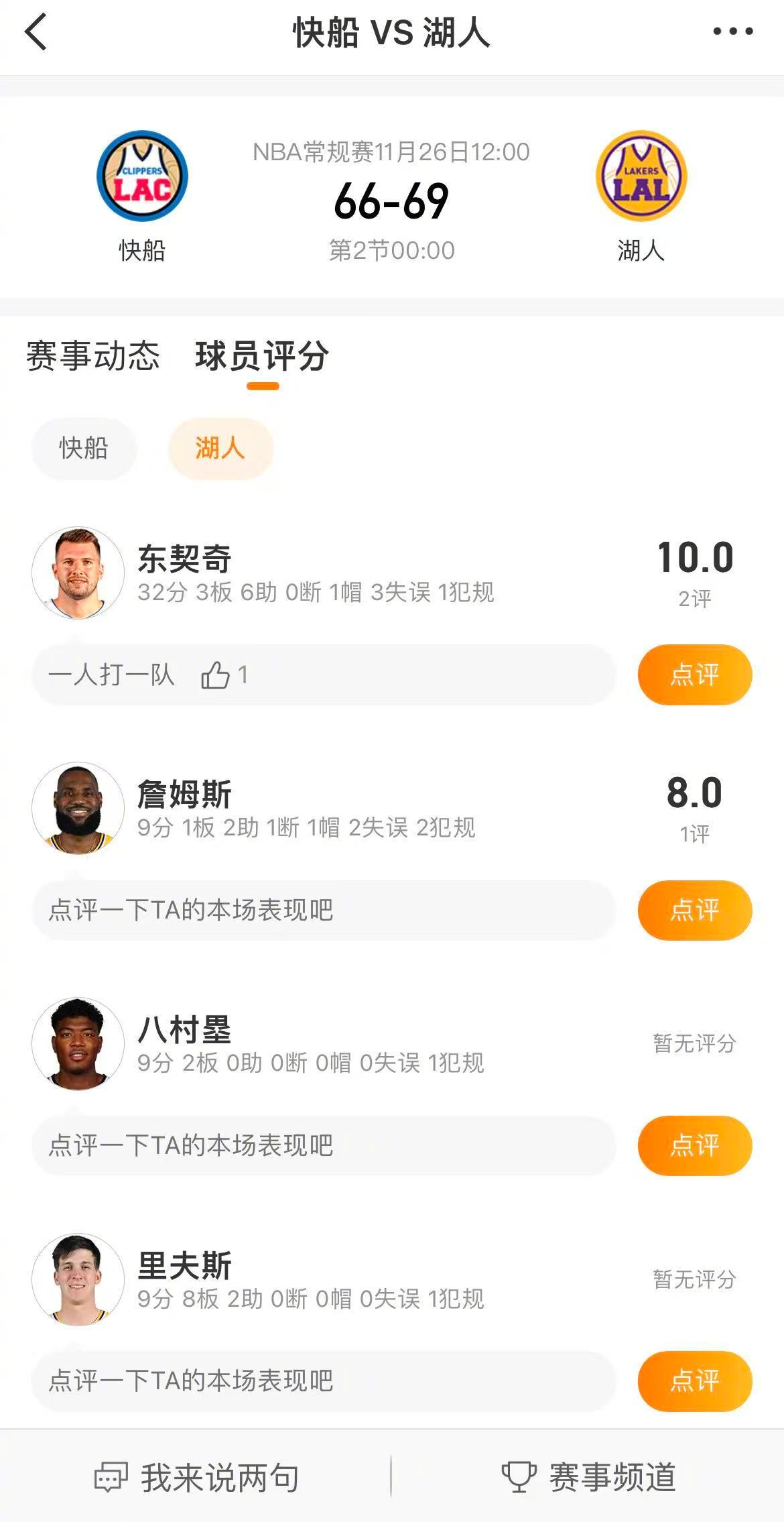 快船vs湖人 东契奇半场32分 半场结束,快船66-69湖人。东契奇半场已经得到32分!詹姆斯9分,哈登16分。快进入球队超话洛杉矶湖人[超话]洛杉矶快船 为球员表现进行打分吧!