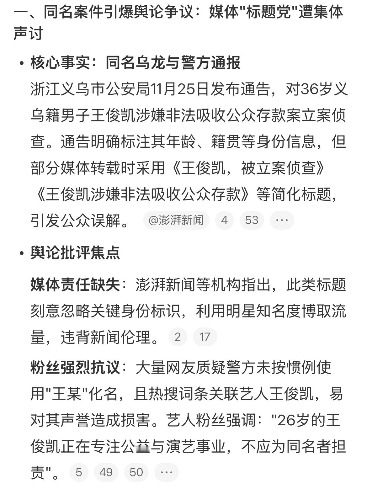 王俊凯被立案侦查的标题不能忍36岁王俊凯涉嫌非法吸收公众存款被立案侦查 就想问一句,如果此人不叫这个名字,这起案件还会这样全网各平台并且「以全名」的形式推送吗,以及还会这样在热搜位挂了一上午居高不下吗