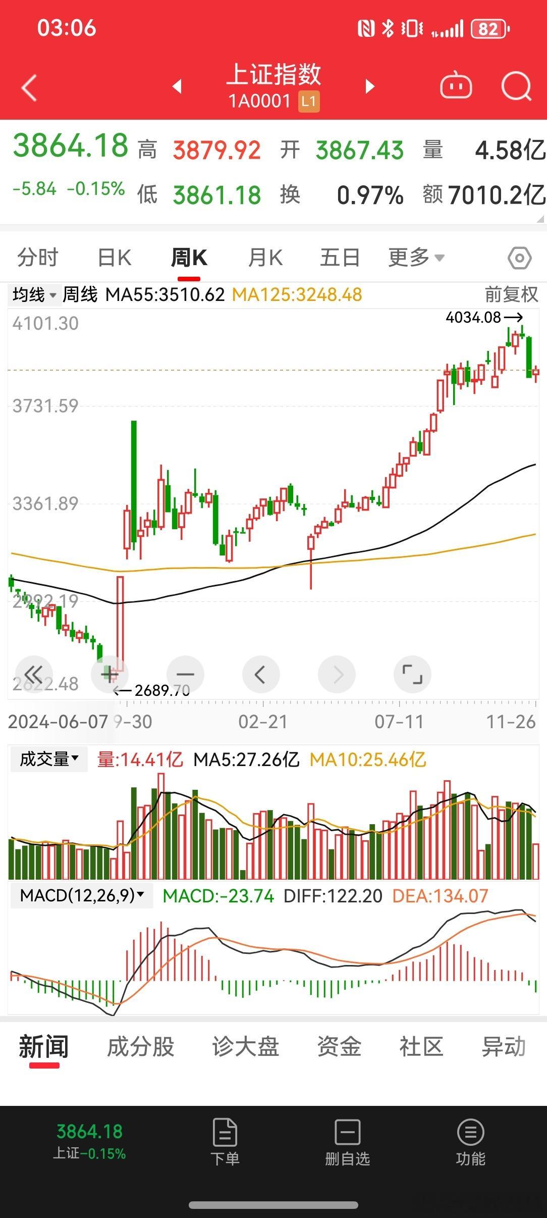 2025/11/26颈线这轮行情的起点为上证指数2635点和2689点的双底,颈线是3040,第一波冲到3674,回调确认颈线,第二波冲到4034,颈线是3674。四浪调整的极限底就是3674点。