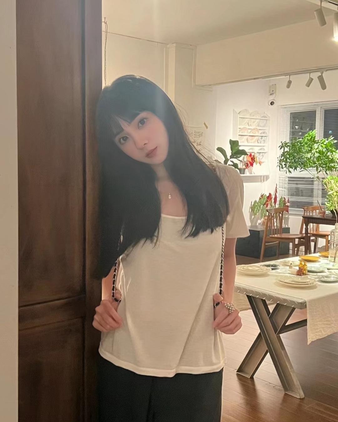 温柔甜美的少女心,浅黄色上衣搭配精致项链,轻松打造清新自然风。
