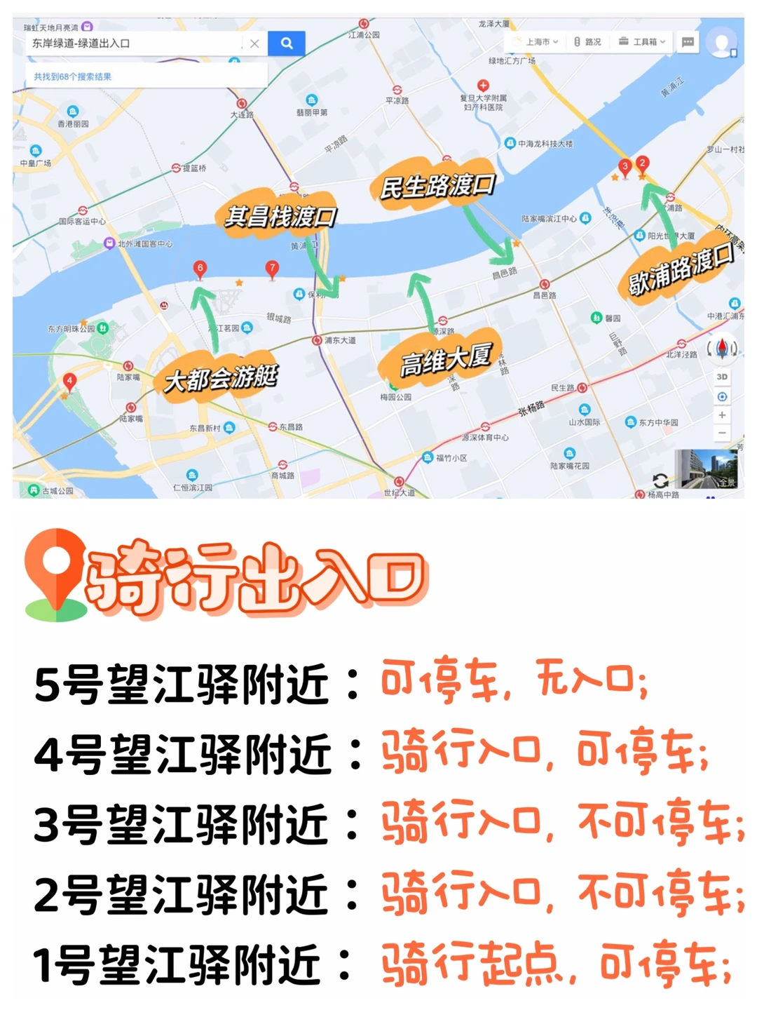 民生路渡口附近有骑行道的入口,但周边不可停车;