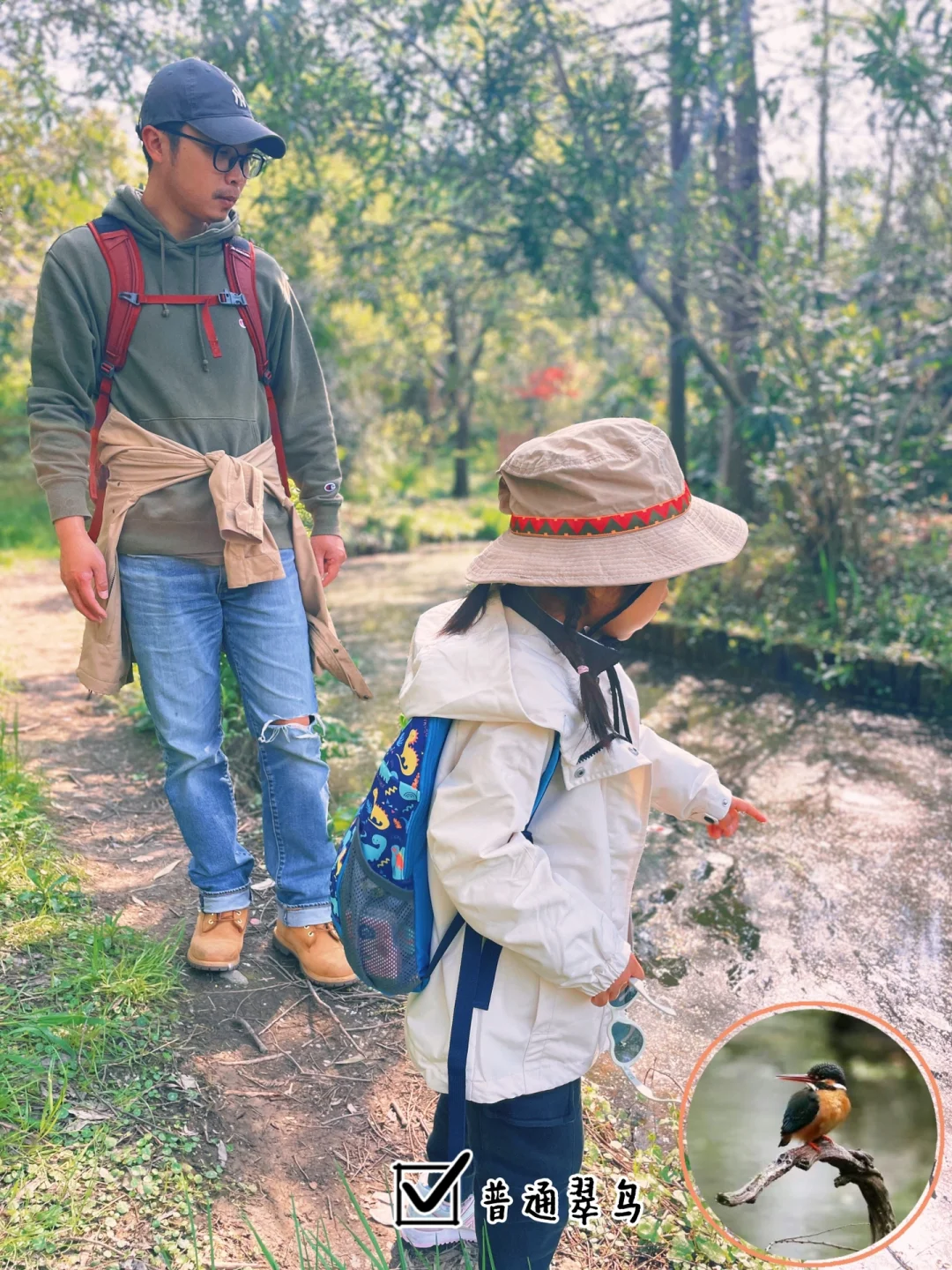 水仙花、小雏菊、红色小瓢虫、普通翠鸟(爸爸此行的目标鸟种✅)、白头鹎、粽背伯劳