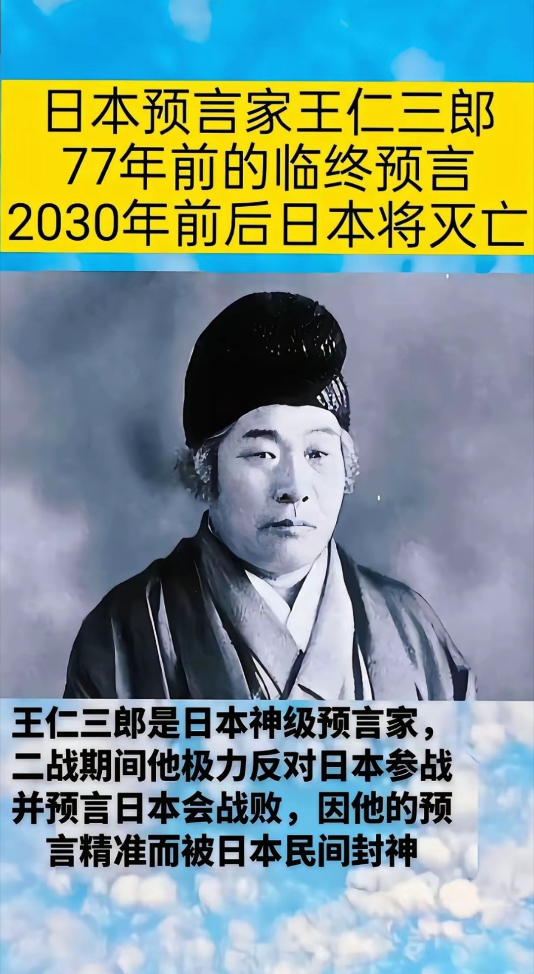 日本灭亡预言来了,日本预言家王仁三朗在77年前临终遗言2030年日本灭绝